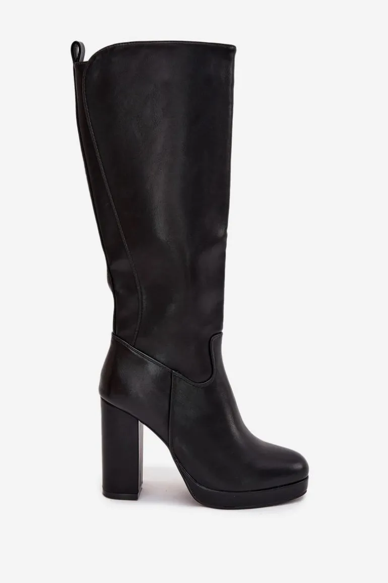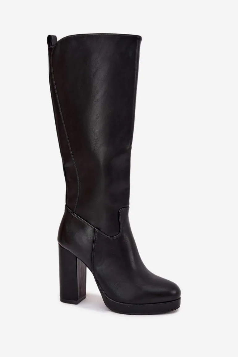 Eleganckie damskie kozaki z gładkiej eko skóry, zapinane na zamek, to połączenie klasyki z nowoczesnym stylem. Zaokrąglone noski zapewniają wygodę, a obcas w formie słupka dodaje stabilności. Model ten posiada elastyczną wstawkę. Doskonałe do sukienek i spódnic, te kozaki stanowią idealne uzupełnienie eleganckich stylizacji, łącząc komfort z ponadczasową elegancją. Przy wyborze rozmiaru prosimy sugerować się tabelą rozmiarów.