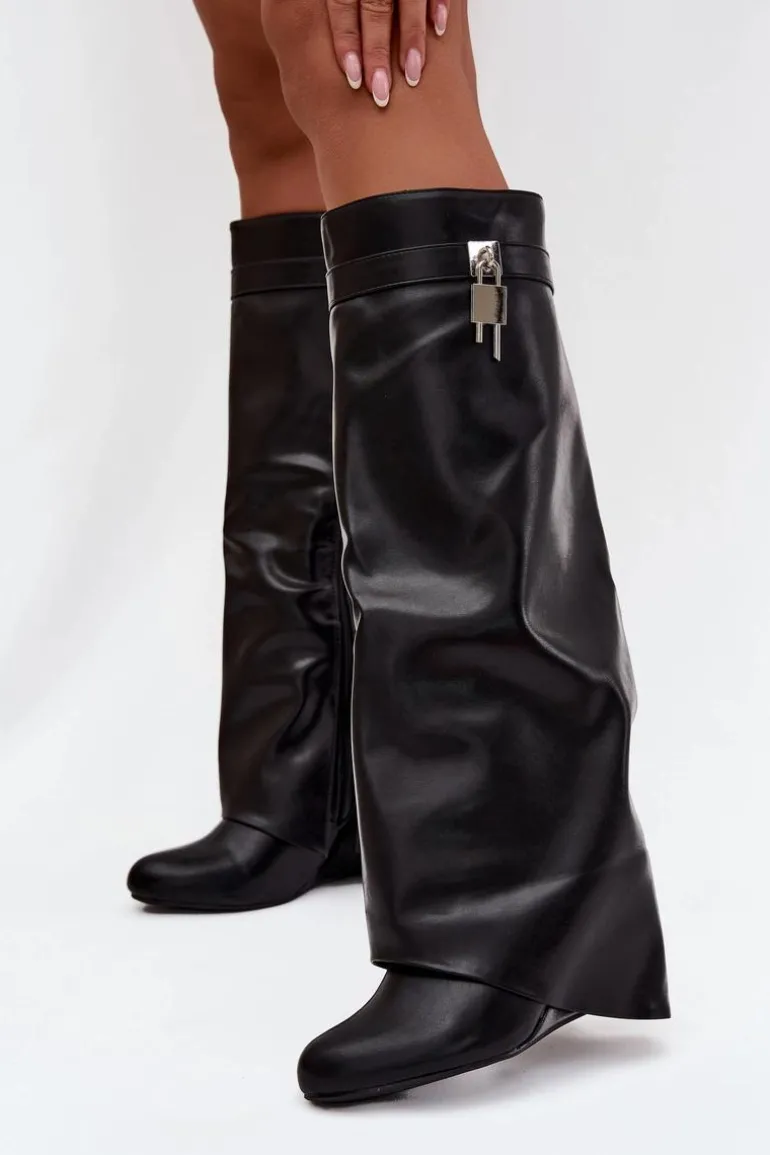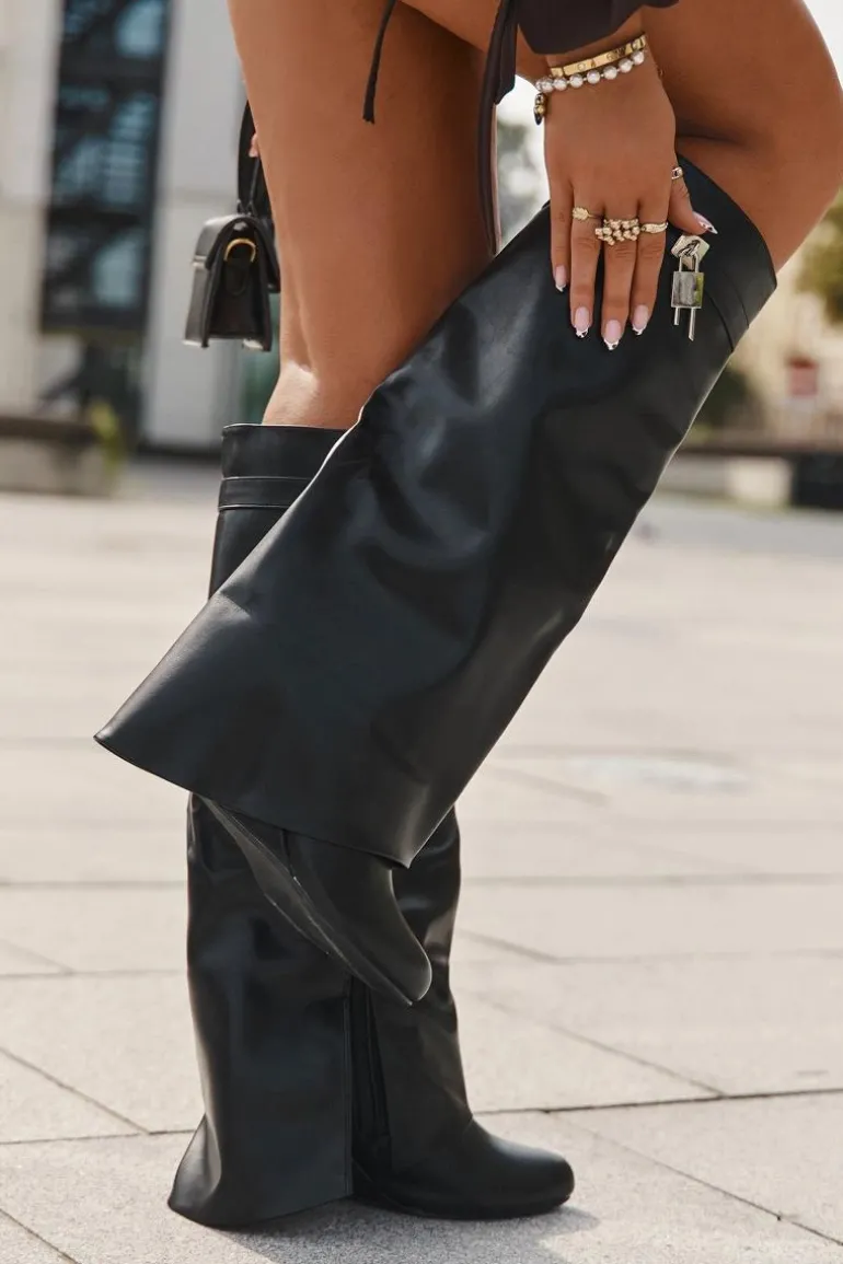 Kozaki damskie wykonane z eko skóry zamszu to idealne połączenie wygody i elegancji. Osadzone na koturnie. Model zapinany jest na praktyczny zamek, a efekt wywiniętej cholewki nadaje mu wyjątkowego charakteru. Całość uzupełnia pasek z ozdobnym detalem umieszczony na górze, który stanowi subtelny akcent dekoracyjny. To stylowe kozaki, które świetnie sprawdzą się zarówno w codziennych, jak i eleganckich stylizacjach. Przy wyborze rozmiaru prosimy sugerować się tabelą rozmiarów.
