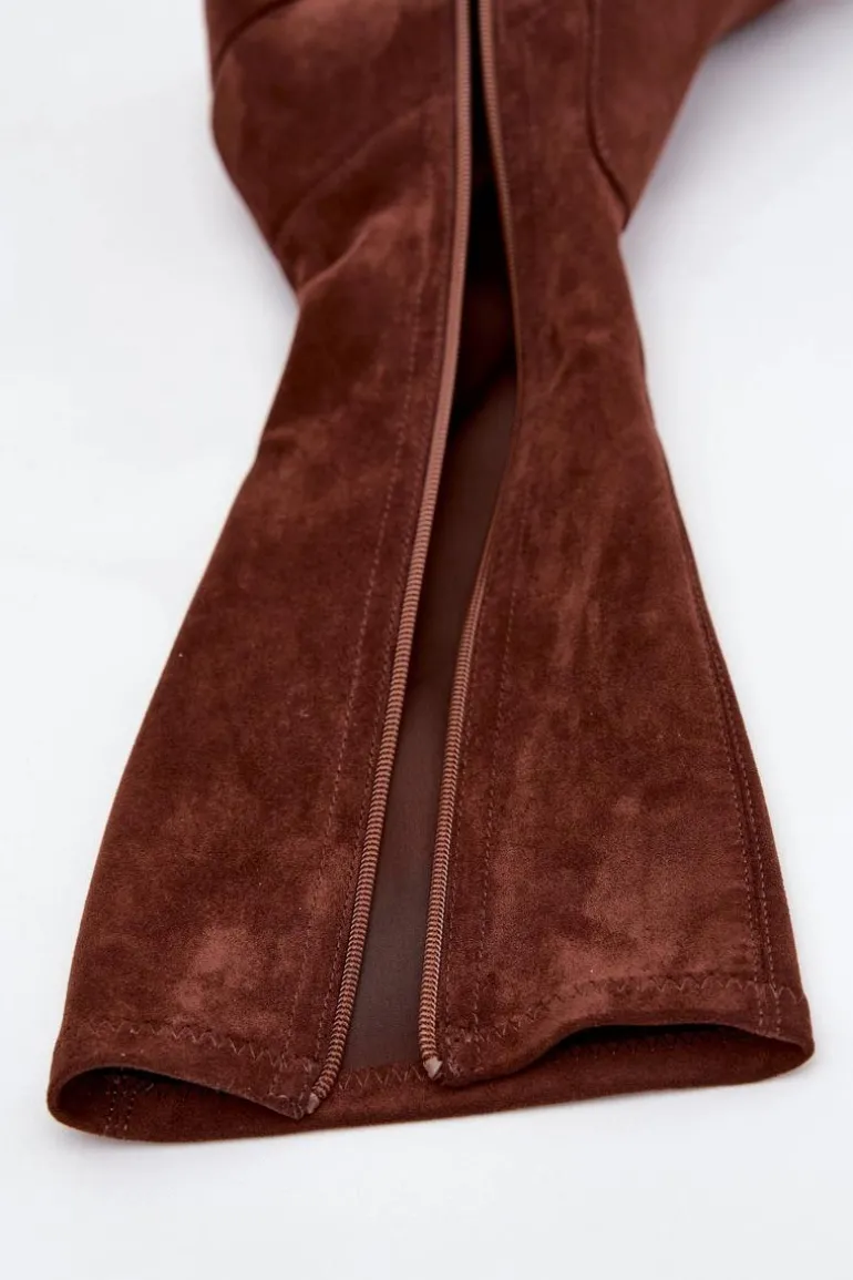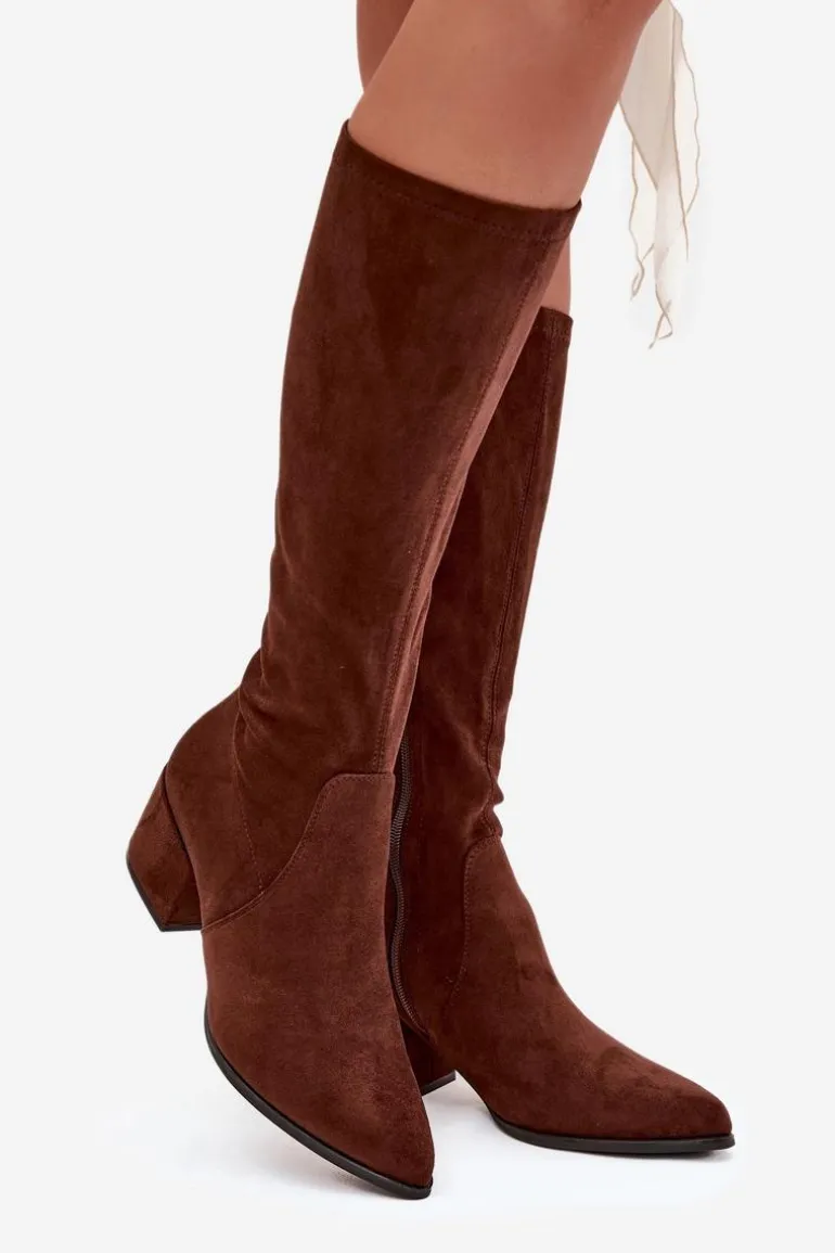 Kozaki Damskie Na Niskim Obcasie Eko Zamszowe Sergio Leone KZ212 Brązowe