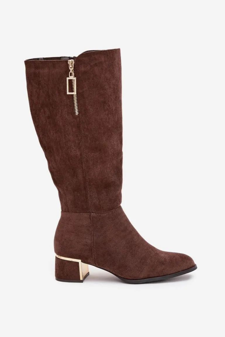 Kozaki damskie wykonane z eko zamszu to doskonała propozycja na chłodniejsze dni. Osadzone na niskim obcasie gwarantują wygodę podczas noszenia, a praktyczny zamek ułatwia zakładanie. Uwagę przyciągają stylowe detale – ozdobny suwak umieszczony na górze cholewki, obcas z lustrzanym elementem oraz przeszycia. To model, który świetnie sprawdzi się zarówno w codziennych, jak i bardziej eleganckich stylizacjach.