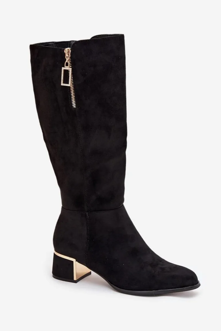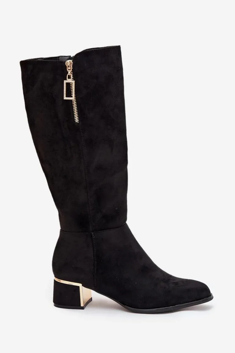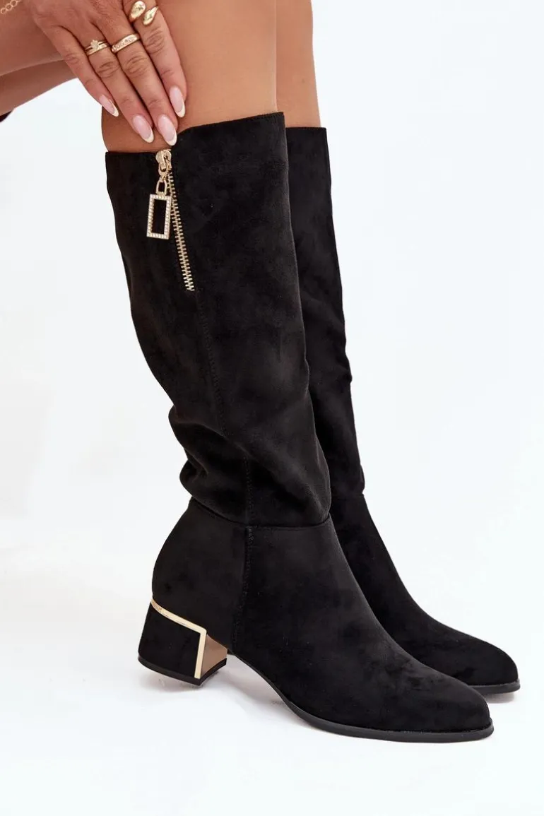 Kozaki damskie wykonane z eko zamszu to doskonała propozycja na chłodniejsze dni. Osadzone na niskim obcasie gwarantują wygodę podczas noszenia, a praktyczny zamek ułatwia zakładanie. Uwagę przyciągają stylowe detale – ozdobny suwak umieszczony na górze cholewki, obcas z lustrzanym elementem oraz przeszycia. To model, który świetnie sprawdzi się zarówno w codziennych, jak i bardziej eleganckich stylizacjach.