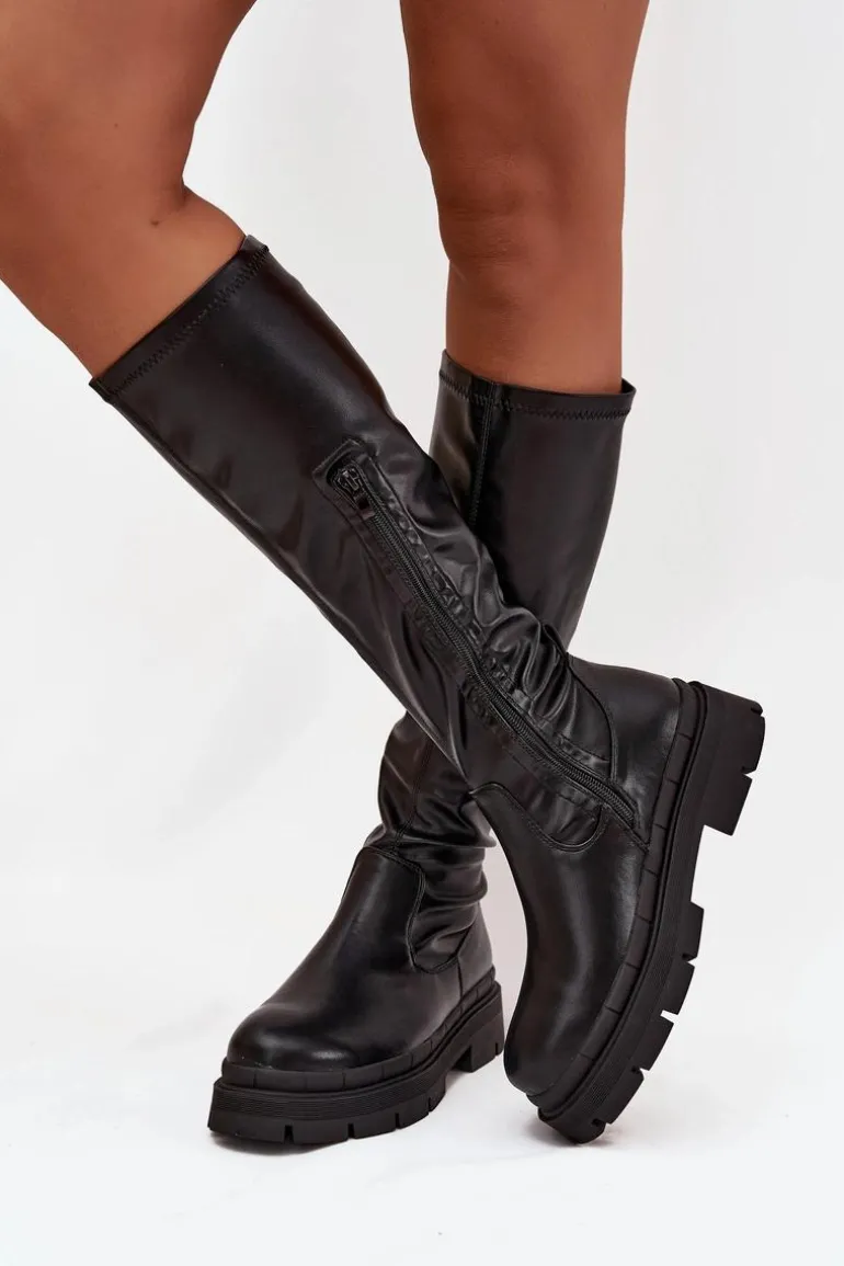 Kozaki damskie wykonane z eko skóry to modny i praktyczny wybór na chłodniejsze dni. Osadzone na platformie gwarantują wygodę, a zaokrąglone noski nadają im klasycznego charakteru. Model wsuwany z dodatkowym suwakiem ułatwia zakładanie, a ocieplenie na wysokości stopy zapewnia ciepło. Stylowy fason sprawia, że botki świetnie prezentują się w zestawieniu z sukienkami i spódnicami, dodając stylizacjom kobiecego charakteru. Przy wyborze rozmiaru prosimy sugerować się tabelą rozmiarów.