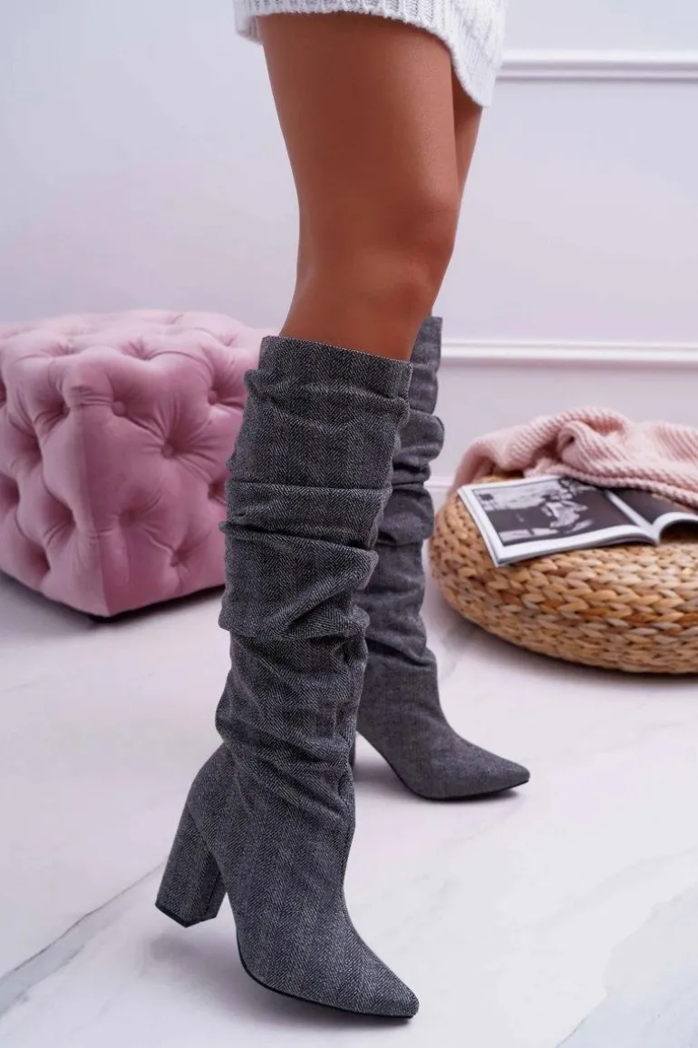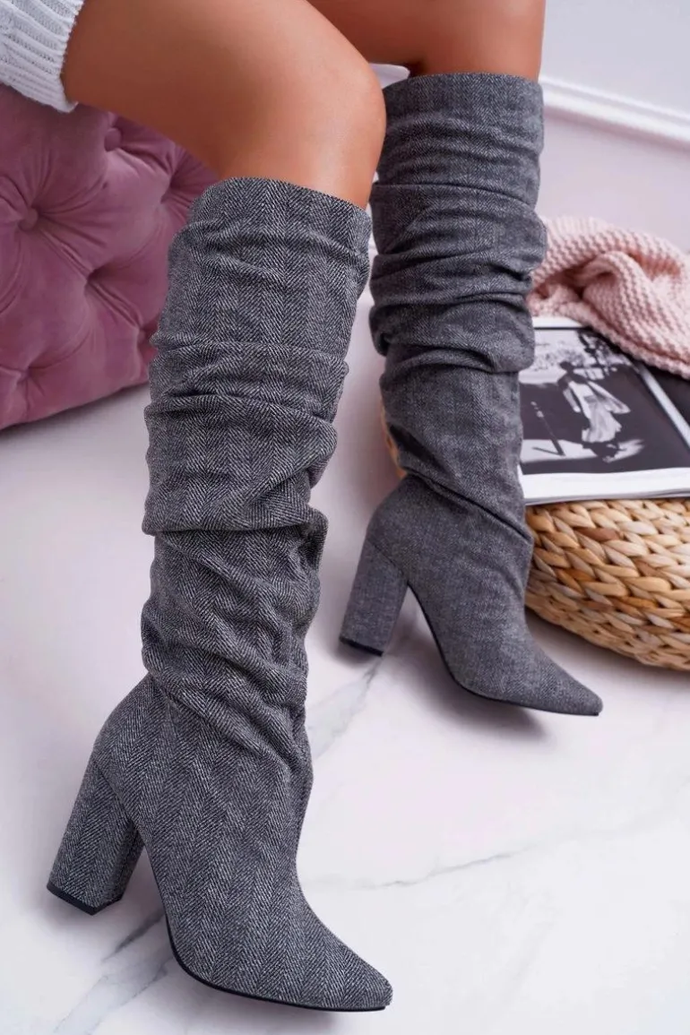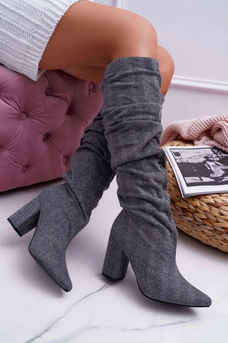 Kozaki Damskie Na Słupku Do Kolan Szare Termen