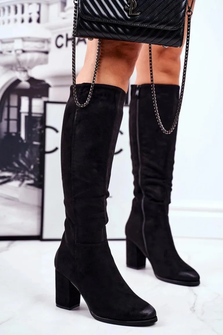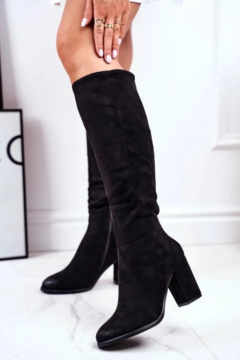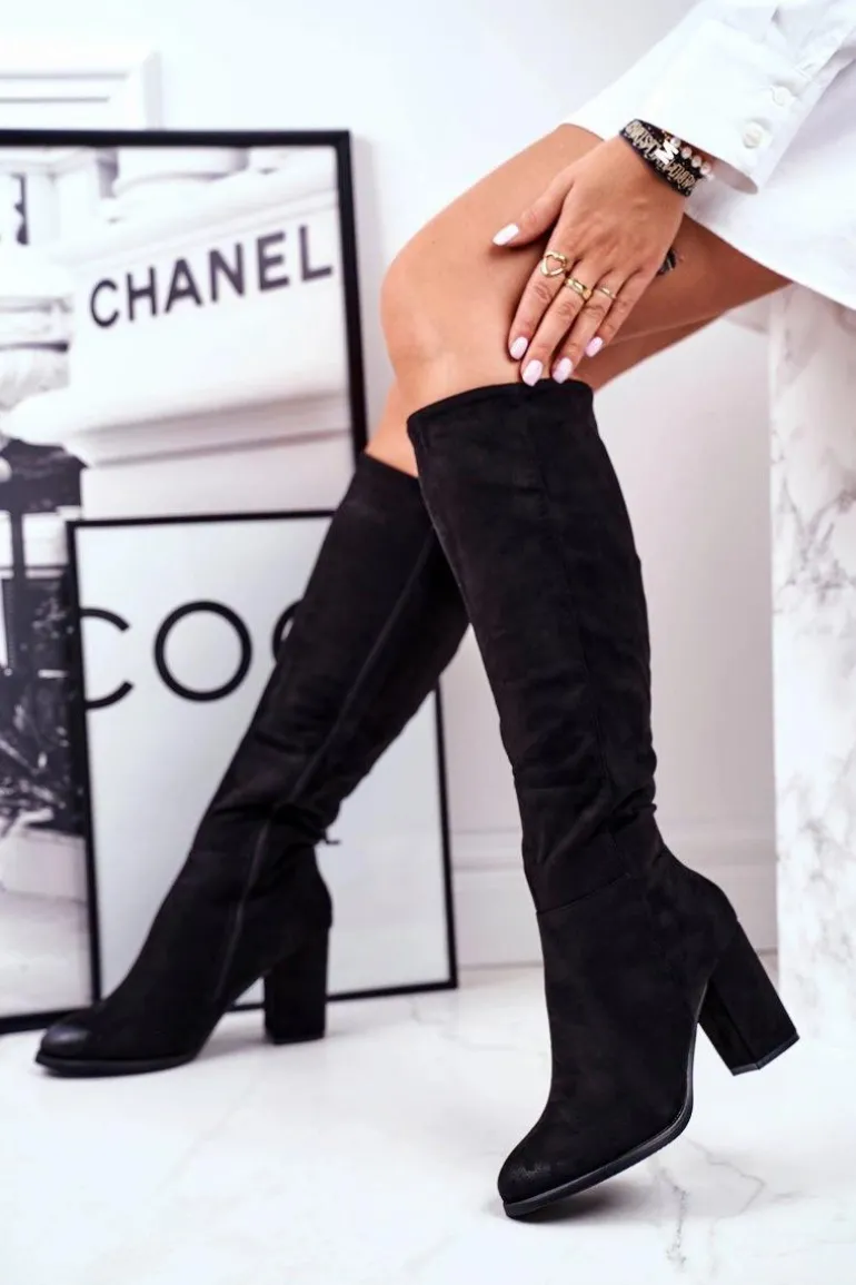 Kozaki Damskie Na Słupku Zamszowe Czarne Many Times