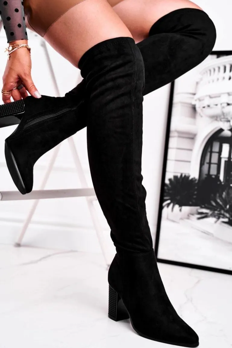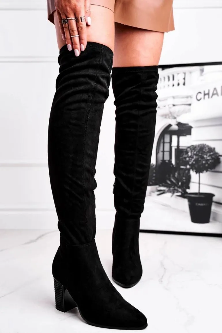 Kozaki Damskie Na Słupku Zamszowe Czarne Victoria