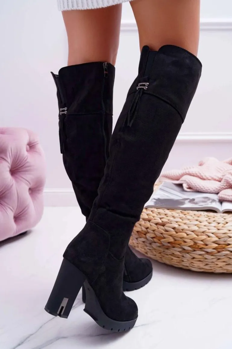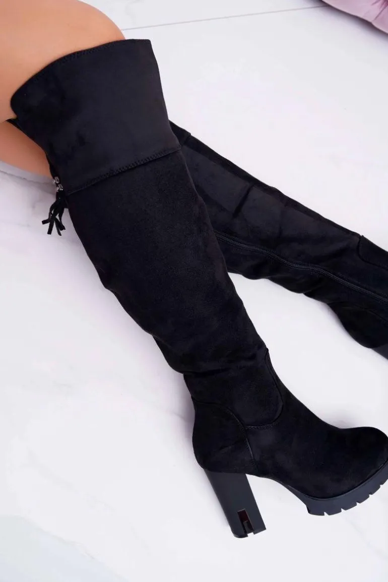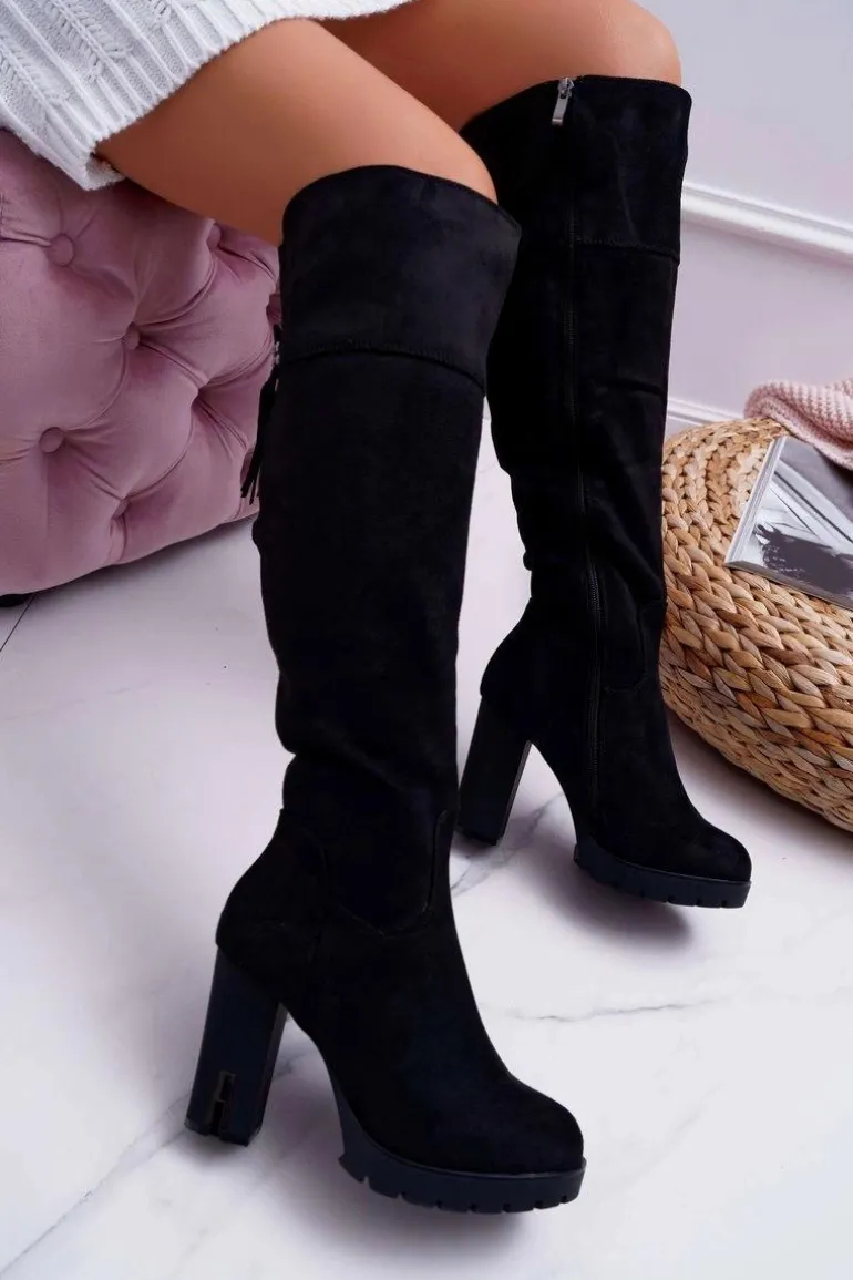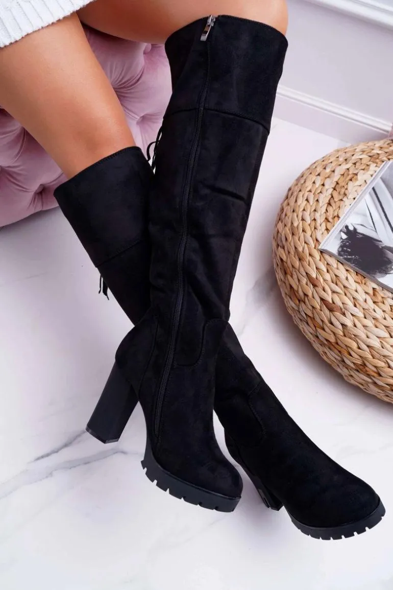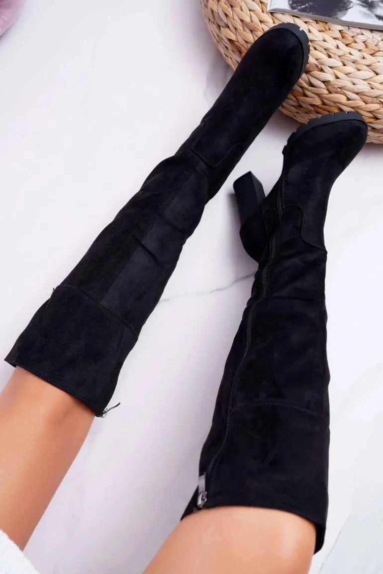 Kozaki Damskie Na Słupku Zamszowe Ocieplane Velkor