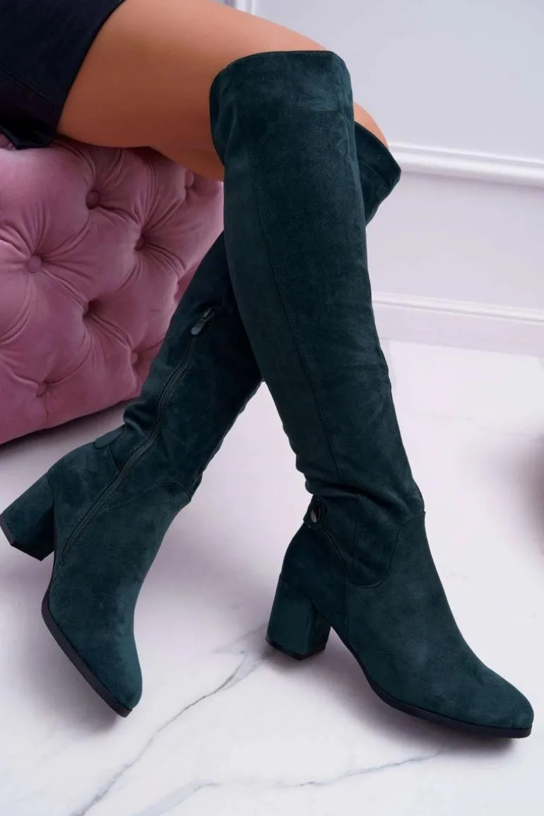 Kozaki Damskie Na Słupku Zamszowe Zielone Torgos