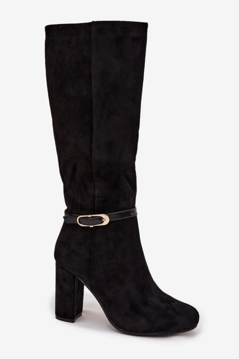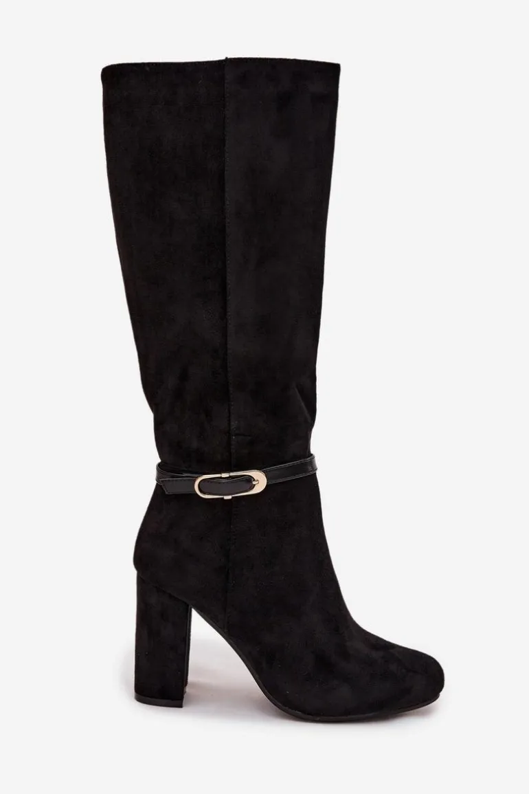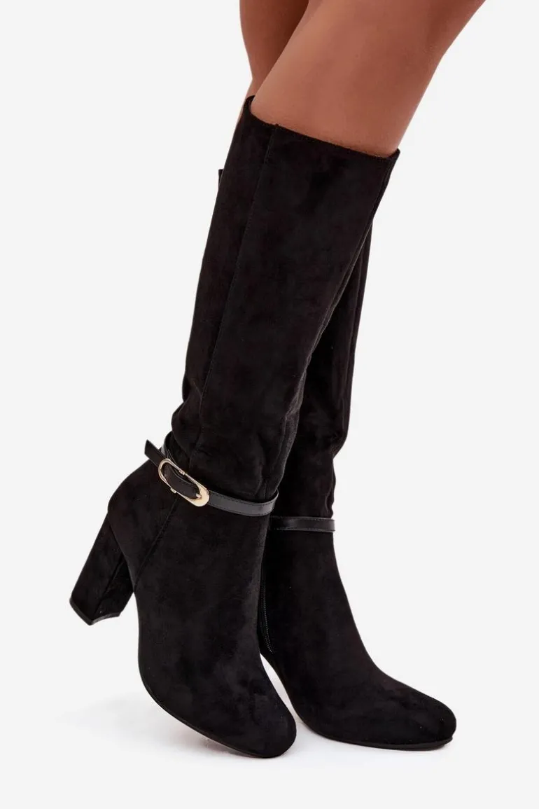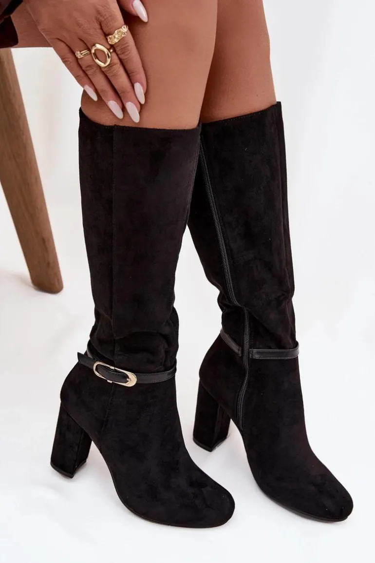 Kozaki damskie wykonane z eko zamszu to elegancka propozycja, która świetnie sprawdzi się w sezonie jesienno-zimowym. Klasyczny fason został urozmaicony subtelnym paseczkiem ze złotą klamrą umieszczonym na cholewce, co nadaje całości szyku i kobiecego charakteru. Model osadzony został na stabilnym obcasie typu słupek, który wysmukla sylwetkę, a jednocześnie zapewnia wygodę podczas noszenia. Zaokrąglone noski podkreślają ponadczasowy styl butów, a wnętrze ocieplone miękkim kocem obuwniczym gwarantuje komfort i ciepło w chłodniejsze dni. To kozaki, które doskonale dopełnią eleganckie stylizacje, ale równie dobrze sprawdzą się w codziennym wydaniu. Przy wyborze rozmiaru prosimy sugerować się tabelą rozmiarów.