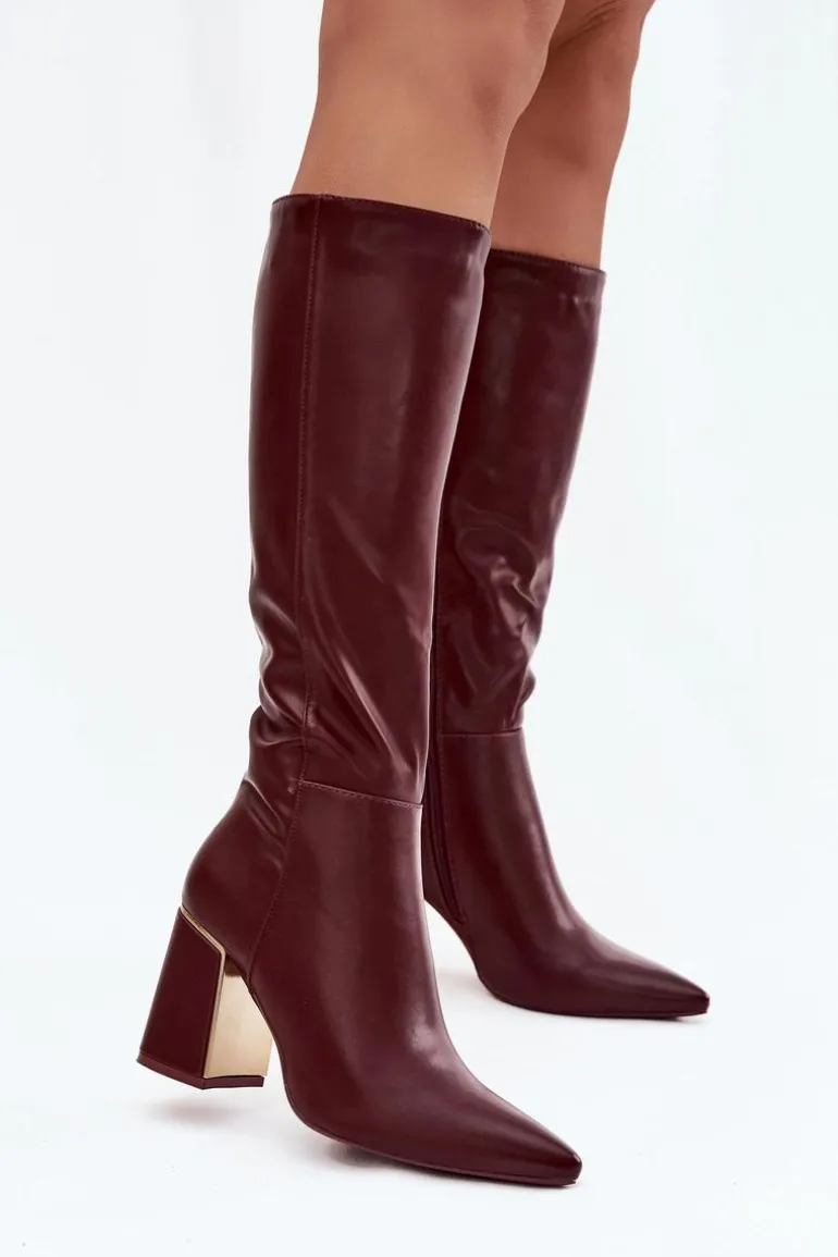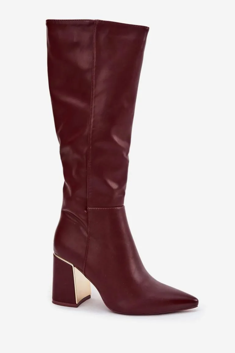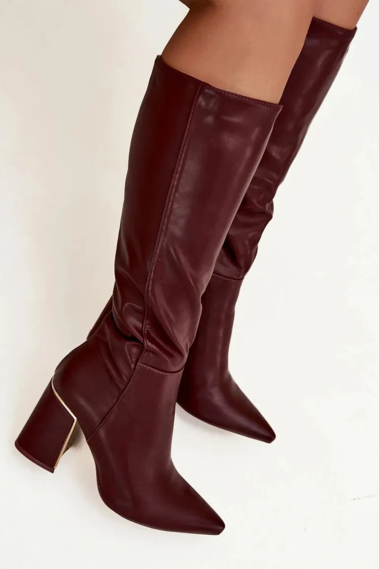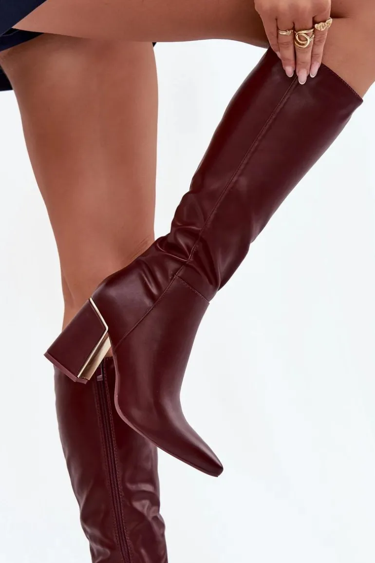 Kozaki na słupku ze złotym akcentem to elegancka propozycja dla kobiet. Model ze szpiczastymi noskami i cholewką sięgającą przed kolano podkreśla kobiecą sylwetkę, a zamek zapewnia łatwe zakładanie i idealne dopasowanie do nogi. Świetnie sprawdzą się w stylizacjach z sukienkami i spódnicami. Przy wyborze rozmiaru prosimy sugerować się tabelą rozmiarów.