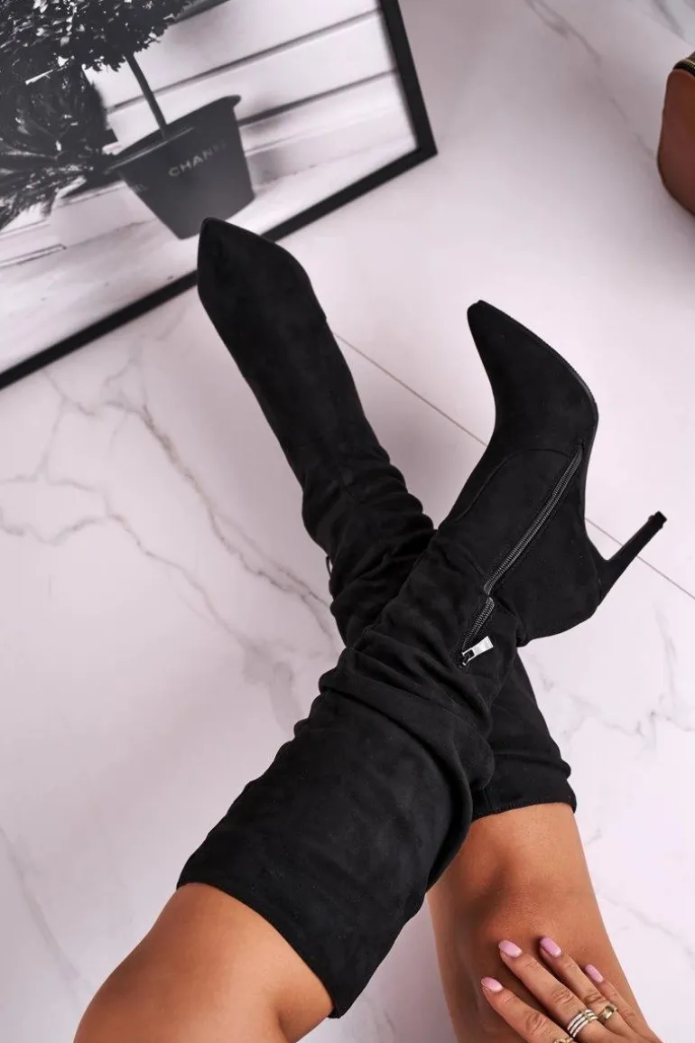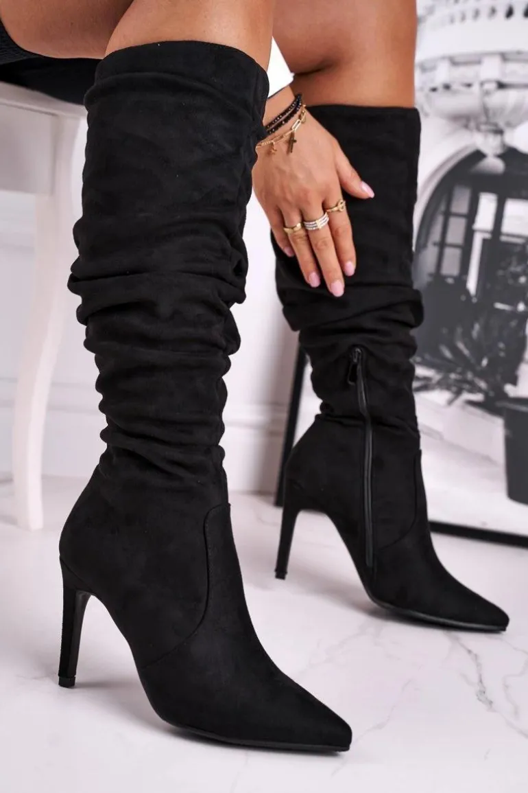 Kozaki Damskie Na Szpilce Zamszowe Czarne Dynamic