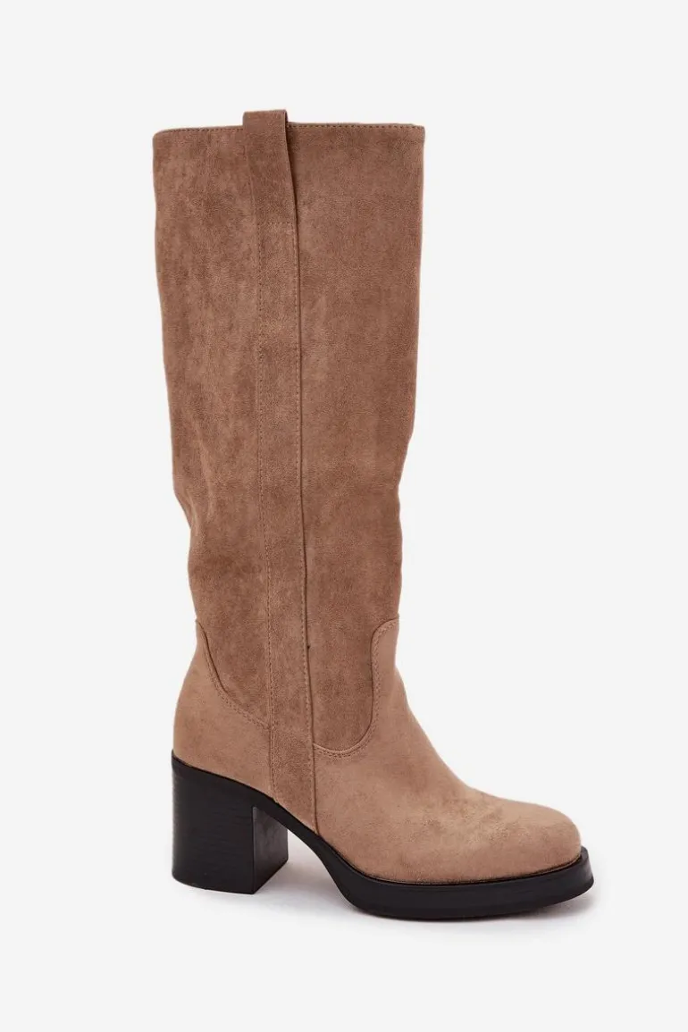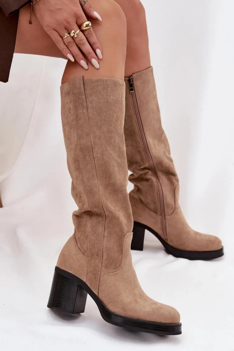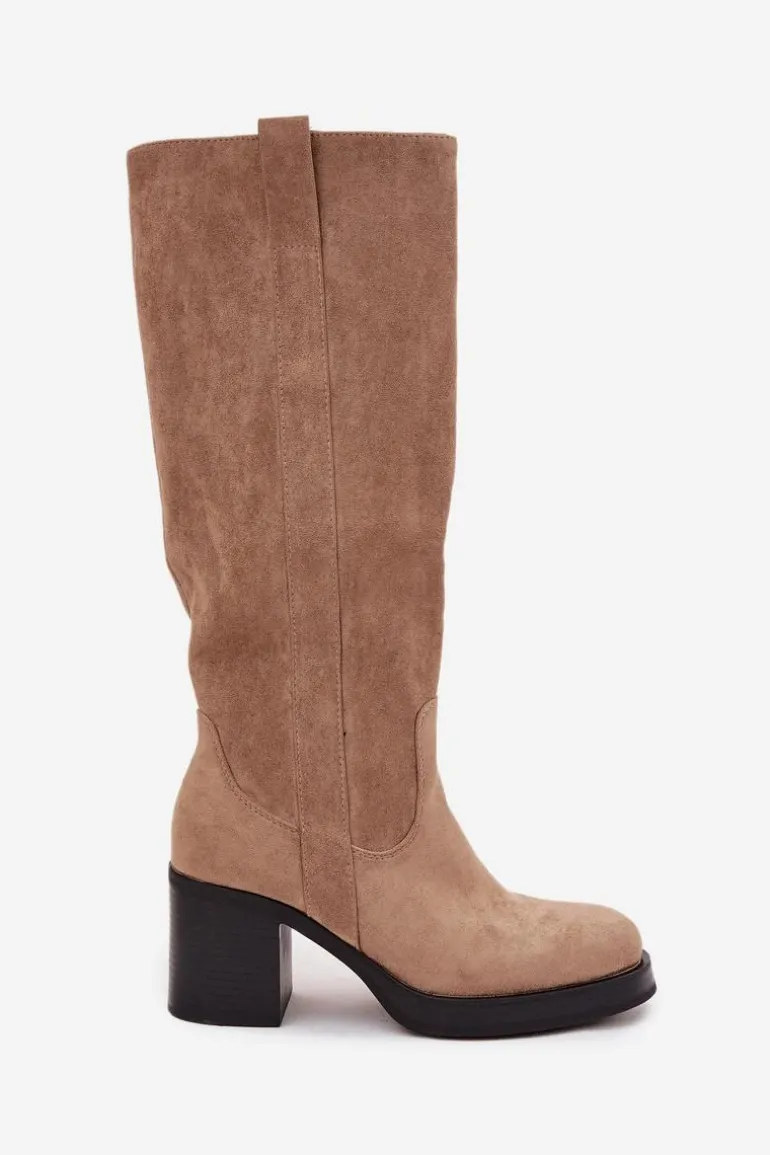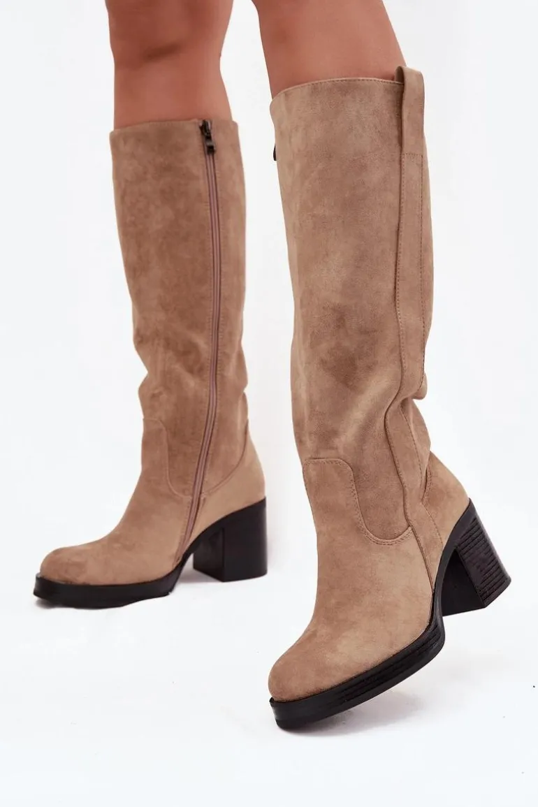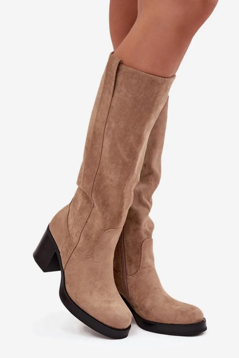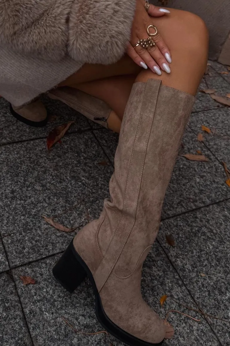 Kozaki damskie wykonane z eko zamszu to doskonała propozycja na sezon jesienno-zimowy. Model osadzony na masywnym obcasie typu słupek zapewnia stabilność oraz wygodę podczas noszenia. Zaokrąglone noski nadają całości klasycznego wyglądu, a praktyczne zapięcie na zamek ułatwia zakładanie i zdejmowanie. Wnętrze ocieplane miękkim kocem obuwniczym gwarantuje komfort termiczny w chłodniejsze dni. To uniwersalne kozaki, które świetnie sprawdzą się zarówno w codziennych, jak i bardziej eleganckich stylizacjach. Przy wyborze rozmiaru prosimy sugerować się tabelą rozmiarów.