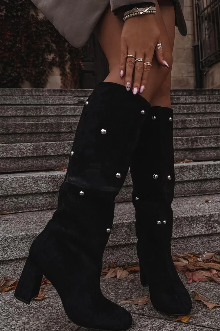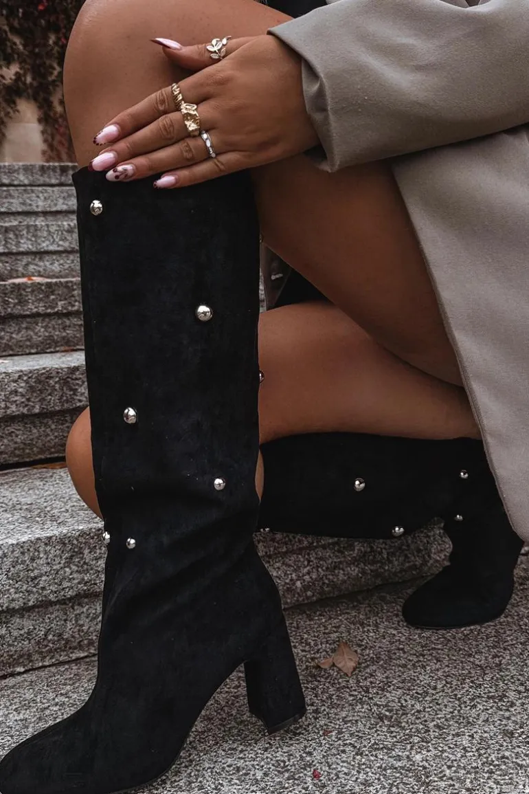 Kozaki damskie wykonane z eko zamszu to stylowa propozycja na sezon jesienno-zimowy. Osadzone na stabilnym obcasie w formie słupka, zapewniają wygodę podczas chodzenia i subtelnie podkreślają sylwetkę. Zaokrąglone noski nadają całości klasycznego wyglądu, a wnętrze ocieplane kocem obuwniczym gwarantuje ciepło w chłodniejsze dni. Uwagę zwracają ozdobne detale na cholewce, które dodają wyjątkowego charakteru. To uniwersalny model, który doskonale uzupełni zarówno codzienne, jak i bardziej kobiece stylizacje. Przy wyborze rozmiaru prosimy sugerować się tabelą rozmiarów.