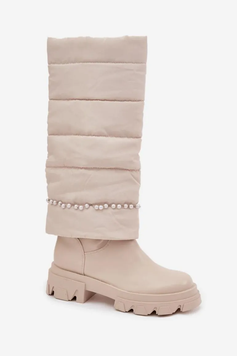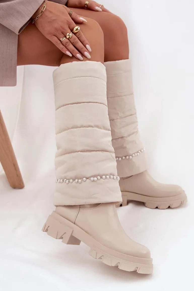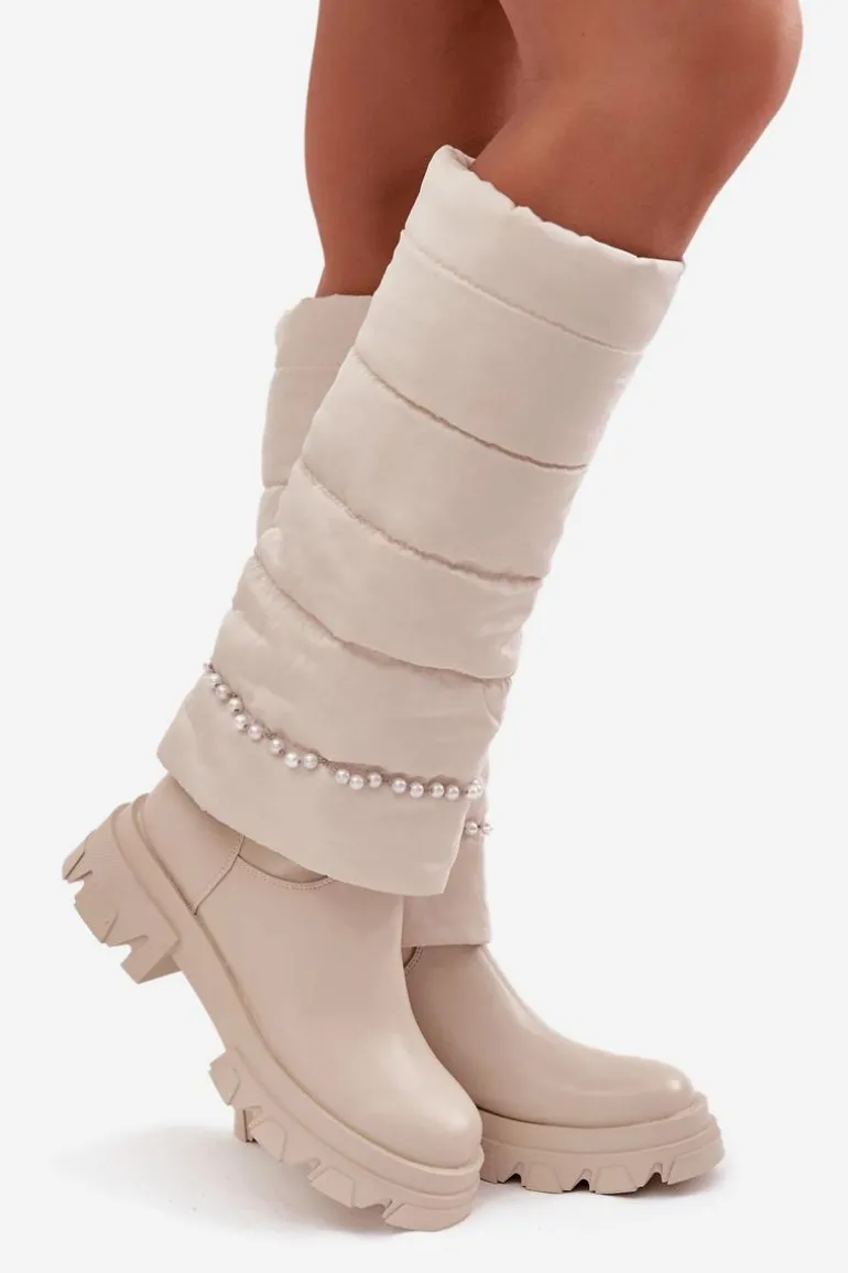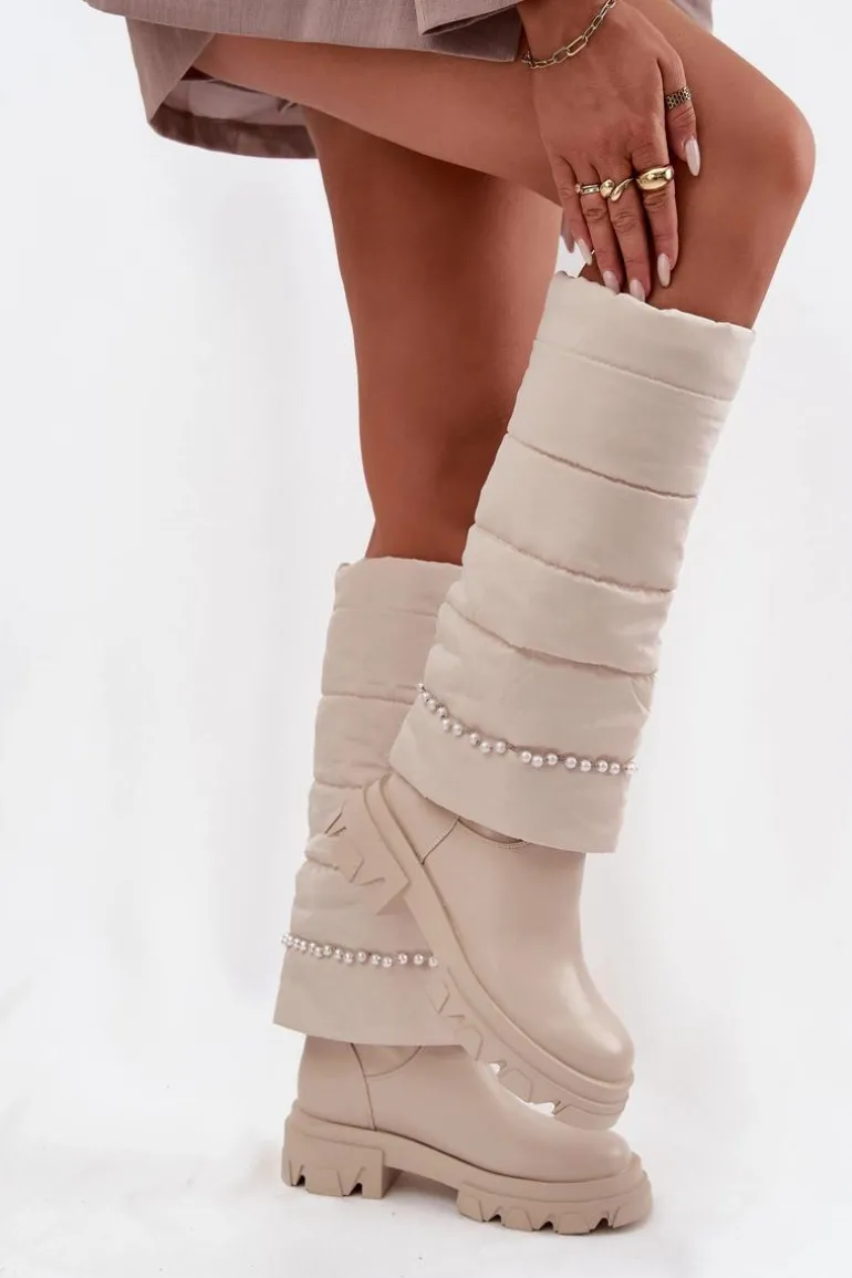 Kozaki damskie wykonane z połączenia eko skóry i materiału tekstylnego to stylowa propozycja na chłodniejsze dni. Wsuwany fason zapewnia wygodę zakładania. Wnętrze ocieplone kocem obuwniczym gwarantuje ciepło i komfort podczas noszenia. Zaokrąglone noski podkreślają klasyczny charakter obuwia, natomiast subtelne koraliki stanowią elegancki detal, który dodaje całości wyjątkowego uroku. To modne i wygodne kozaki, które doskonale sprawdzą się w codziennych stylizacjach. Przy wyborze rozmiaru prosimy kierować tabelą rozmiarów.