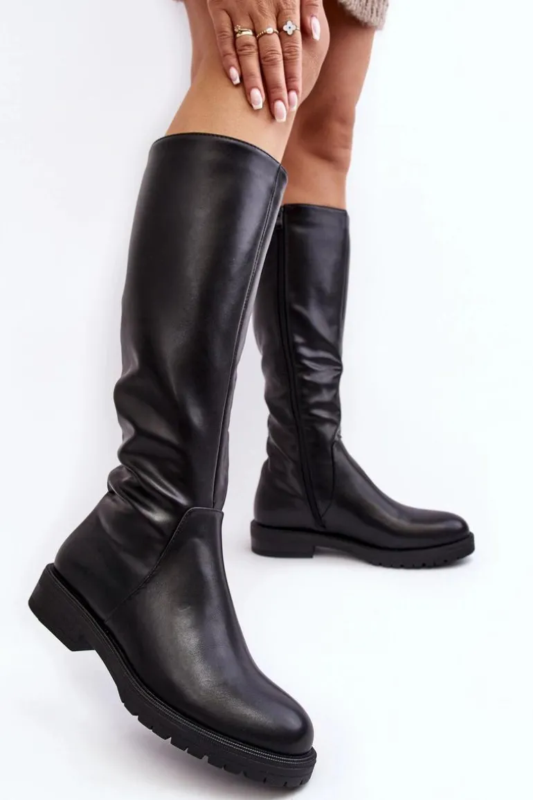 Damskie kozaki zostały wykonane z wysokiej jakości eko skóry. Osadzone na płaskim obcasie. Ocieplone w środku futerkiem. Cholewka przed kolano zapinana na suwak. Noski zaokrąglone. Usztywniony zapiętek. Ten klasyczny model powinien znaleźć się w Twojej szafie! Wykorzystasz je w wielu sytuacjach! Przy wyborze rozmiaru prosimy sugerować się tabelą rozmiarów.