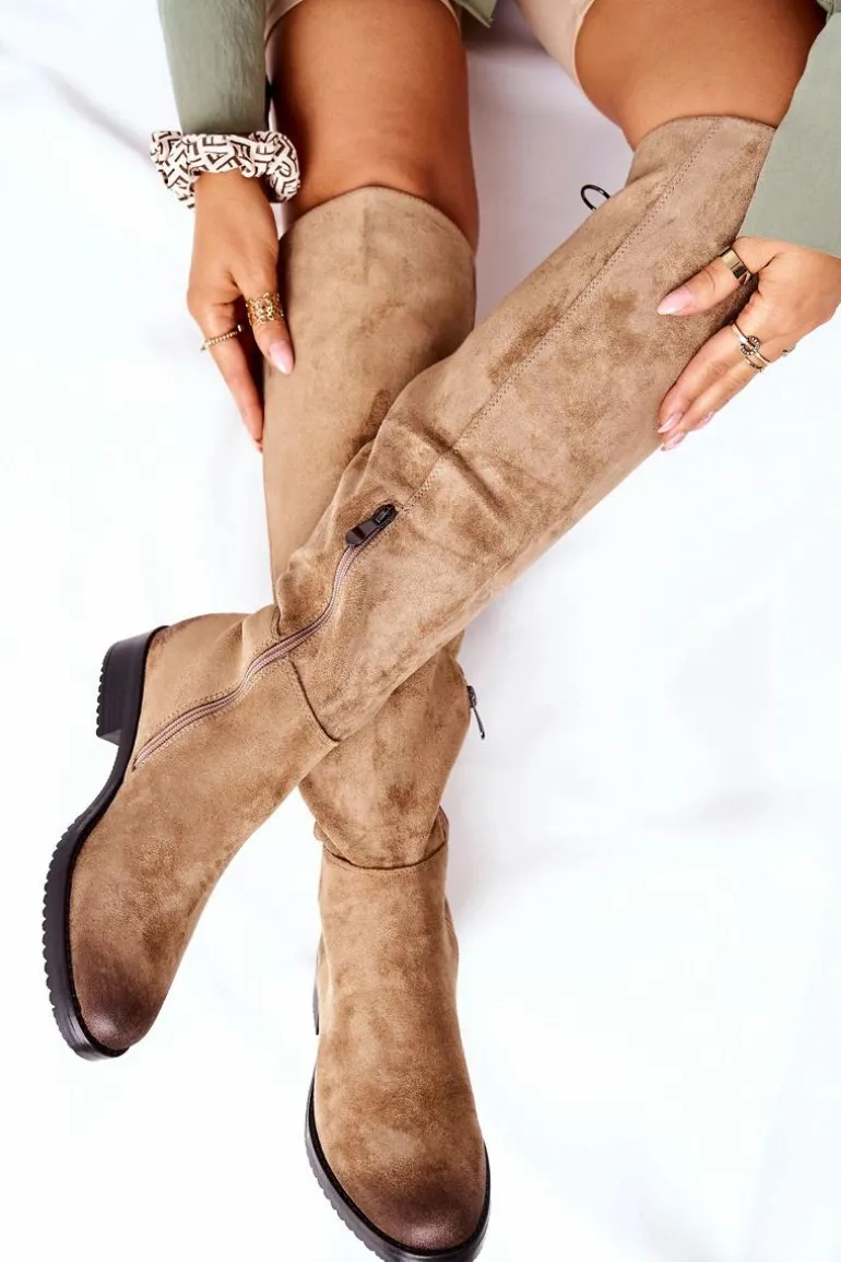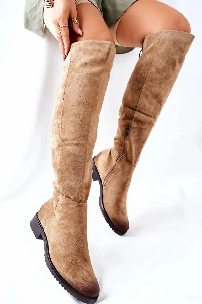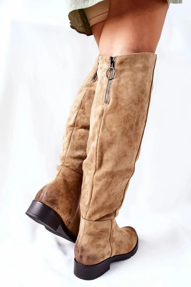 Kozaki Damskie Płaskie Zamszowe Beżowe Ardmore