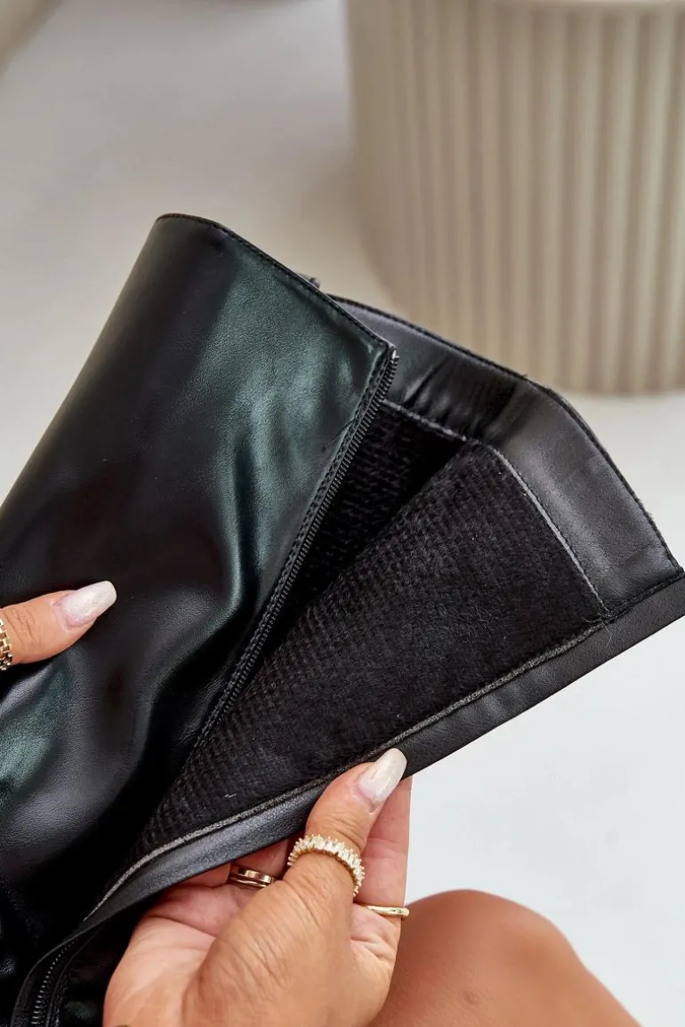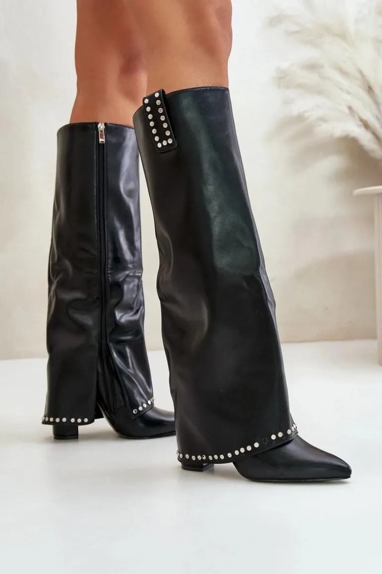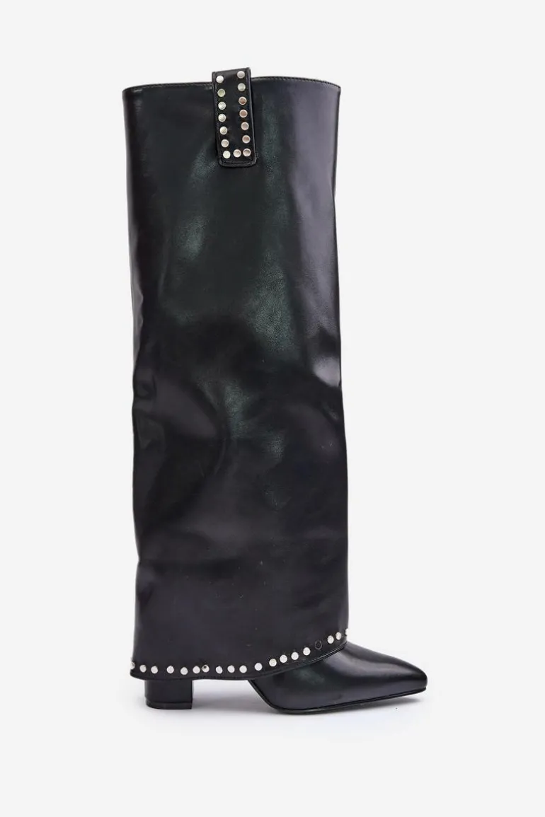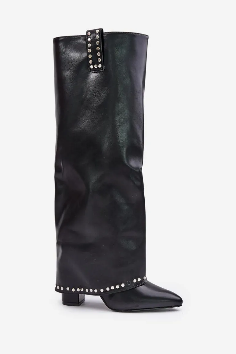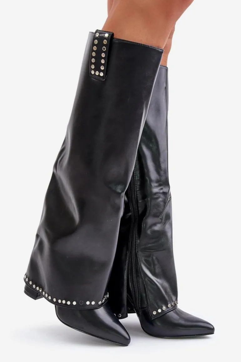Damskie kozaki z luźną cholewką wykonane z eko skóry. Osadzone na stabilnym słupkowym obcasie, z noskami w szpic, które dodają wyrafinowanego charakteru. Wnętrze ocieplone kocem obuwniczym zapewnia ciepło w chłodniejsze dni. Wywinięta cholewka, która płynnie przechodzi na obcas, stanowi wyjątkowy element tego modelu. Zapinane na suwak, świetnie komponują się z sukienkami i spódnicami, dodając szyku każdej stylizacji. Przy wyborze rozmiaru prosimy sugerować się tabelą rozmiarów.