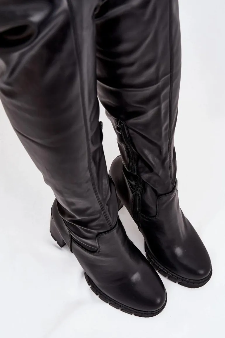 Kozaki damskie z wysoką cholewką za kolano to kobieca propozycja, która pięknie podkreśla nogi. Model osadzony na wysokim obcasie typu słupek optycznie wysmukla sylwetkę, a jednocześnie zapewnia stabilność i wygodę podczas noszenia. Zaokrąglone noski nadają całości delikatnego, klasycznego charakteru. Kozaki są wsuwane, a zamek umieszczony z boku ułatwia ich zakładanie. To idealny wybór dla kobiet, które cenią modny wygląd — doskonale komponują się zarówno z sukienkami i spódnicami, jak i krótkimi spodenkami, tworząc efektowne stylizacje. Przy wyborze rozmiaru prosimy sugerować się tabelą rozmiarów.