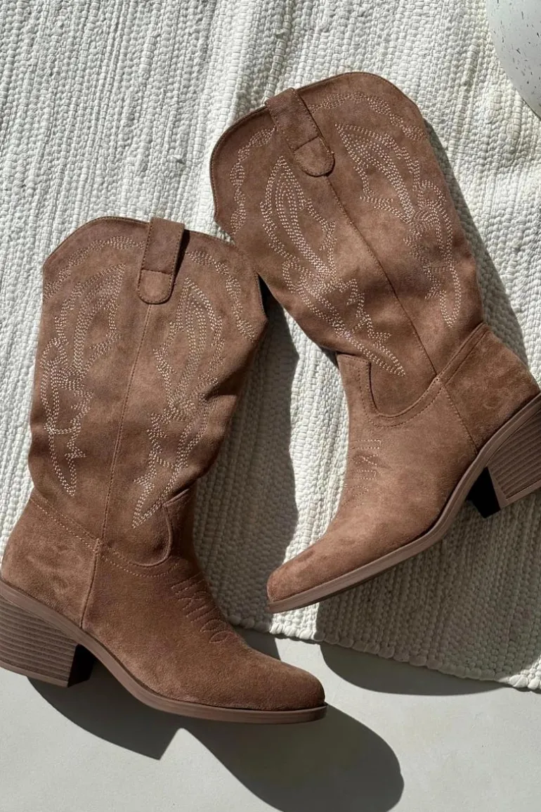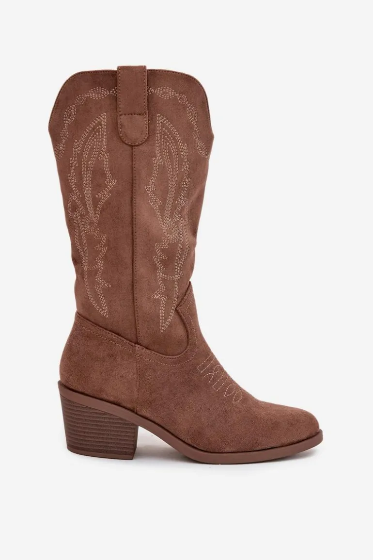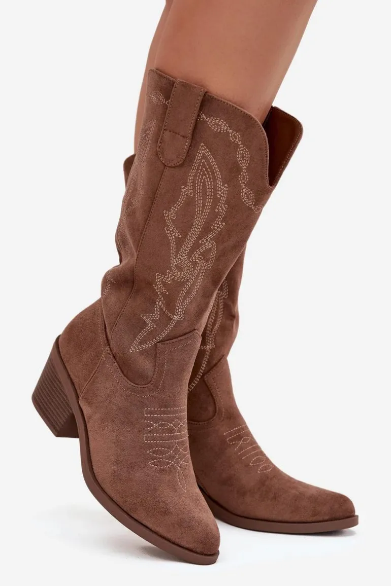 Kozaki kowbojki od marki Vinceza to połączenie klasycznego westernowego stylu z nowoczesnym, miejskim lookiem. Wykonane z eko zamszu, prezentują się lekko i stylowo, a charakterystyczne przeszycia podkreślają kowbojski charakter butów. Noski w kształcie migdała dodają im kobiecego akcentu, a stabilny obcas zapewnia wygodę i pewny krok. Model jest ocieplany, co gwarantuje komfort w chłodniejsze dni, a zamek po boku ułatwia szybkie zakładanie. Przy wyborze rozmiaru prosimy sugerować się tabelą rozmiarów.