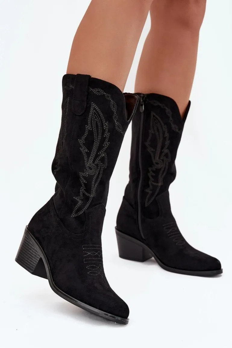 Kozaki kowbojki od marki Vinceza to połączenie klasycznego westernowego stylu z nowoczesnym, miejskim lookiem. Wykonane z eko zamszu, prezentują się lekko i stylowo, a charakterystyczne przeszycia podkreślają kowbojski charakter butów. Noski w kształcie migdała dodają im kobiecego akcentu, a stabilny obcas zapewnia wygodę i pewny krok. Model jest ocieplany, co gwarantuje komfort w chłodniejsze dni, a zamek po boku ułatwia szybkie zakładanie. Przy wyborze rozmiaru prosimy sugerować się tabelą rozmiarów.