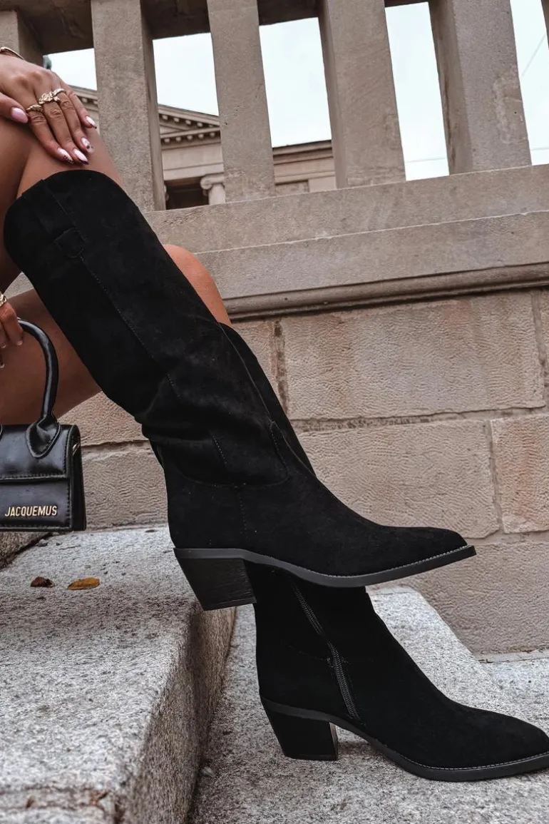 Kozaki damskie w stylu kowbojek, wykonane z eko zamszu. Osadzone na charakterystycznym, ściętym obcasie, dodają sylwetce lekkości i podkreślają kobiecy styl. Migdałowe noski nadają całości subtelności, a wsuwany fason z dodatkowym zapięciem na zamek zapewnia wygodę zakładania i idealne dopasowanie do nogi. To model, który doskonale wpisuje się w aktualne trendy – świetnie prezentuje się zarówno z sukienkami i spódnicami, jak i z dopasowanymi spodniami typu skinny. Stylowe i uniwersalne, staną się efektownym uzupełnieniem jesienno-zimowych stylizacji. Przy wyborze rozmiaru prosimy sugerować się poniższą tabelą rozmiarów.
