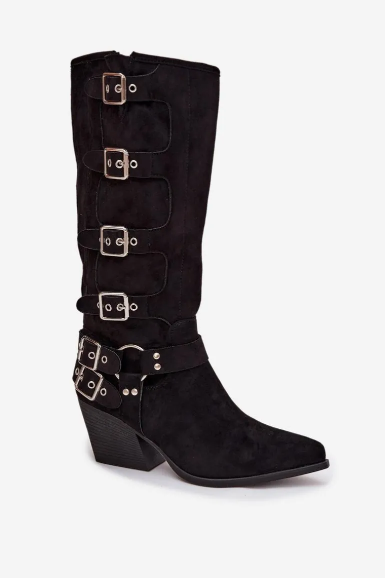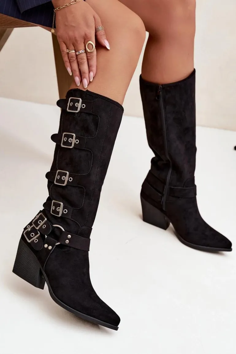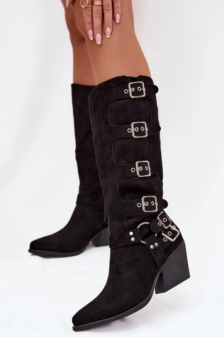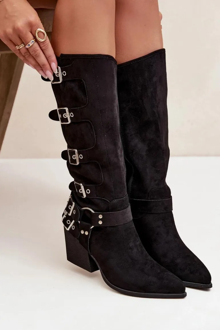 Kozaki kowbojki damskie wykonane z eko zamszu to modna propozycja inspirowana westernowym stylem. Osadzone na ściętym obcasie typu słupek zapewniają wygodę i stabilność, a szpiczaste noski dodają im elegancji oraz smukłego wyglądu. Model zapinany na praktyczny zamek jest łatwy w użytkowaniu, a ozdobne klamry podkreślają charakterystyczny, kowbojski styl. To kozaki, które świetnie sprawdzą się zarówno w casualowych stylizacjach z jeansami, jak i w połączeniu z sukienką czy spódnicą, dodając całości wyrazistego charakteru. Przy wyborze rozmiaru prosimy sugerować się poniższą tabelą rozmiarów.