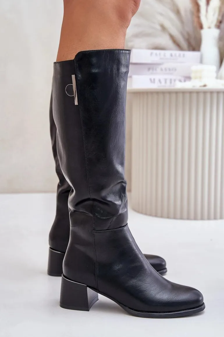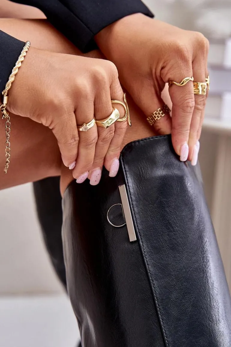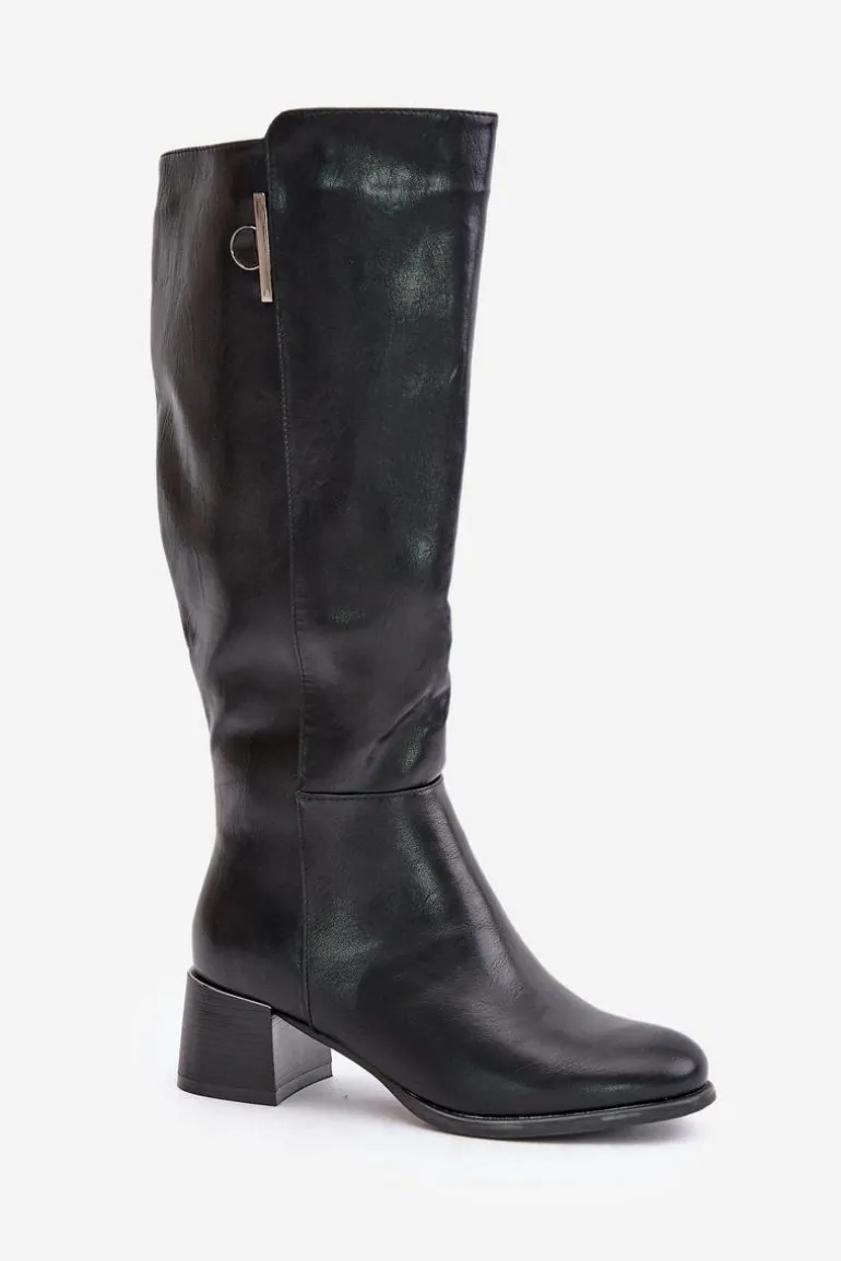 Botki marki Jezzi wykonane z eko skóry to elegancki wybór na chłodniejsze dni. Model osadzony na obcasie typu klocek, który zapewnia stabilność i komfort noszenia. Cholewka sięga przed kolano, dodając stylowego wyglądu i optycznie wydłużając nogi. Zapięcie na zamek ułatwia zakładanie, a ocieplenie kocem obuwniczym gwarantuje ciepło. Model ten idealnie sprawdzi się do stylizacji z sukienkami i spódnicami. Przy wyborze rozmiaru prosimy sugerować się tabelą rozmiarów.