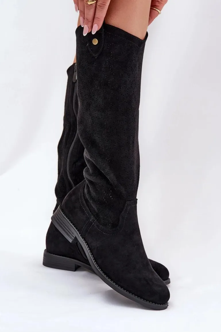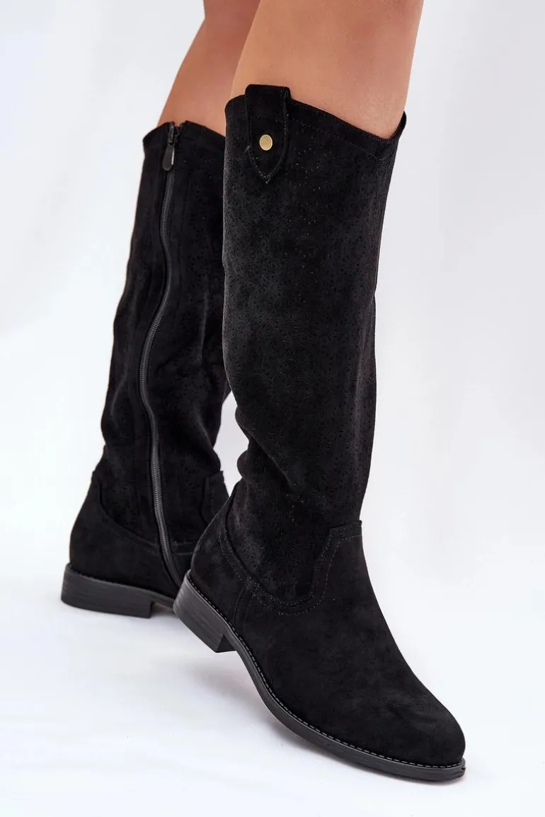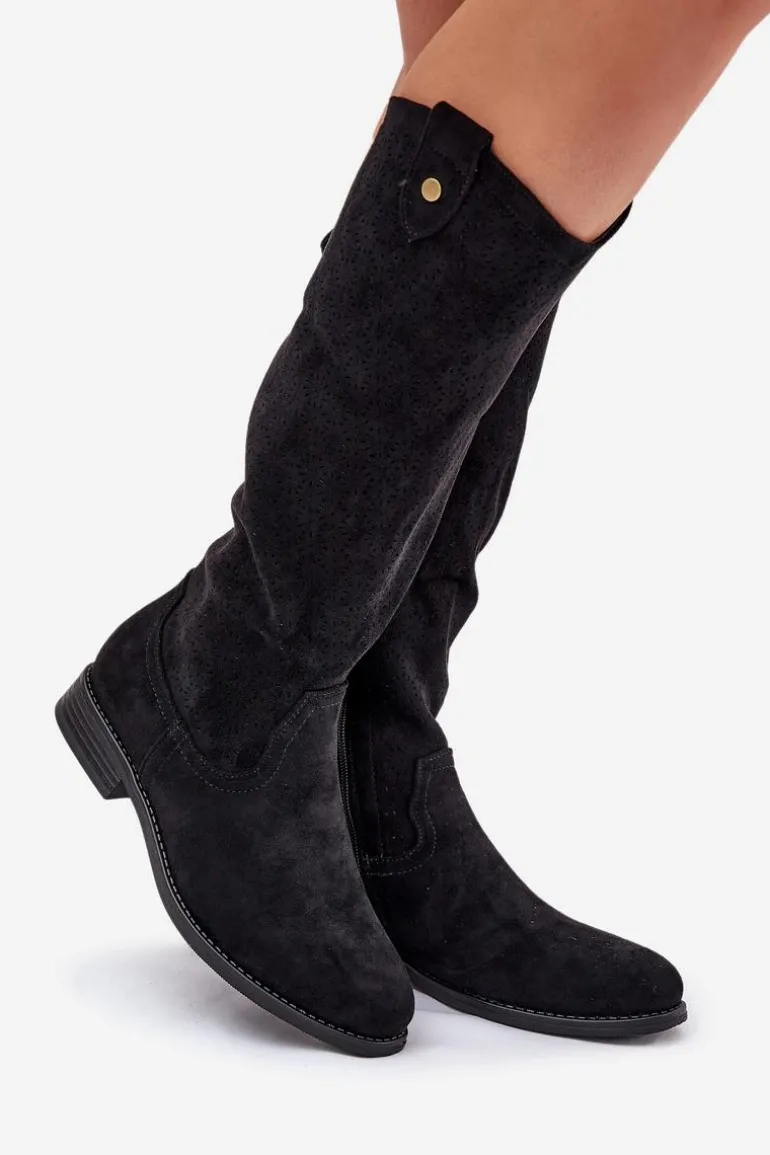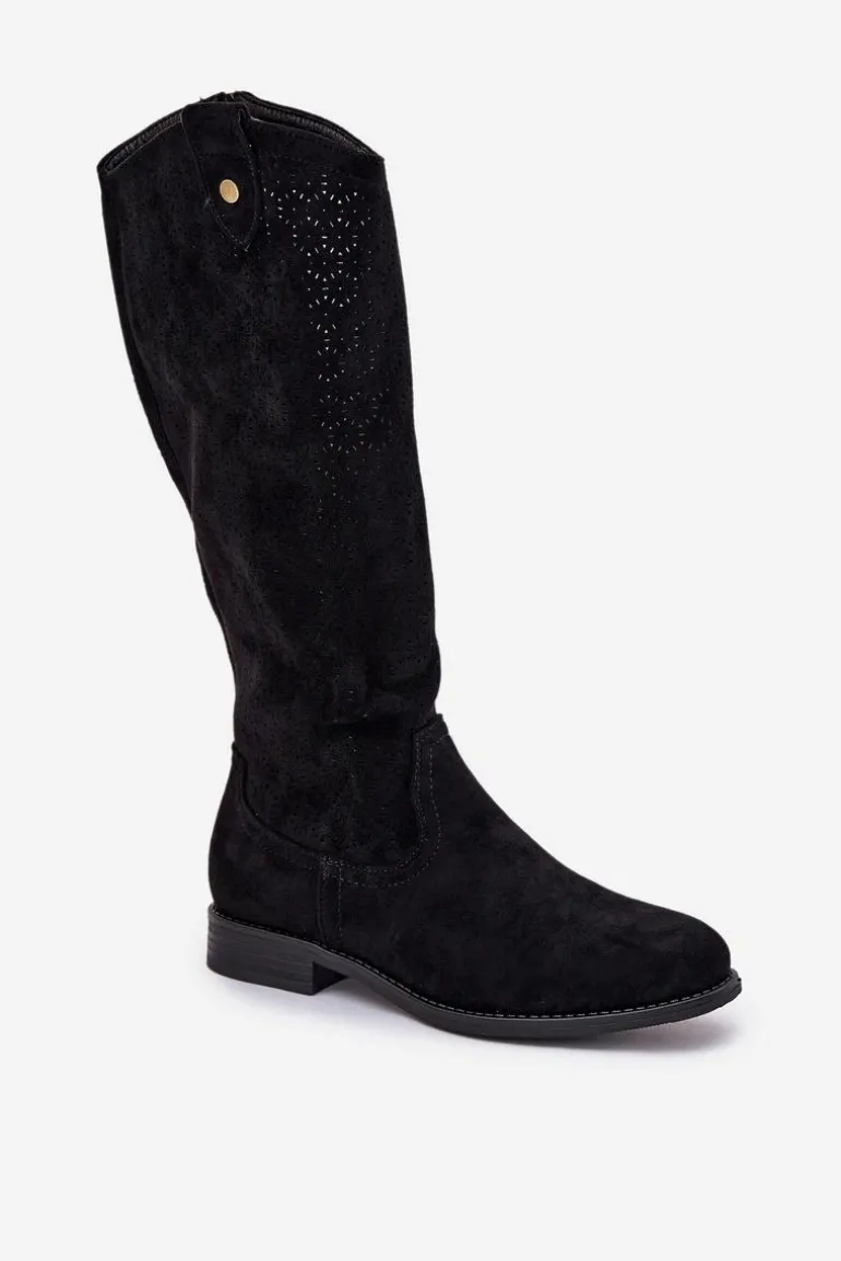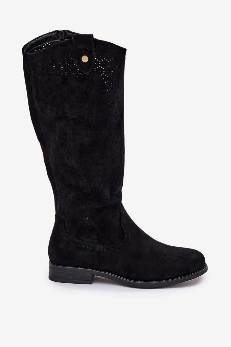 Kozaki Na Płaskim Obcasie Z Ażurowym Wzorem S.Barski HY51-062 Czarne