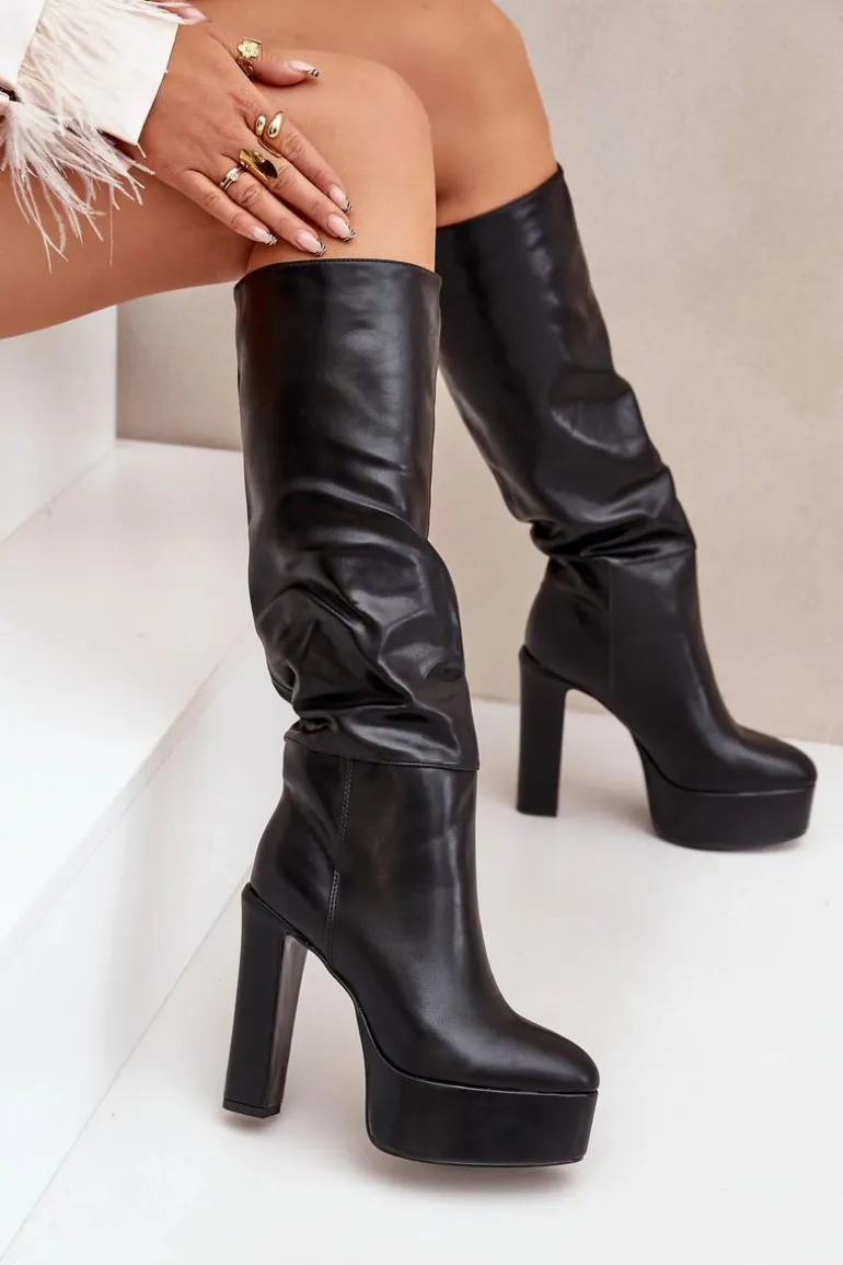 Wsuwane kozaki damskie wykonane z eko skóry. Osadzone na masywnej platformie i stabilnym obcasie typu słupek, łączą styl z komfortem. Wnętrze ocieplane kocem obuwniczym zapewnia ciepło w chłodne dni. Cholewka z delikatnym marszczeniem dodaje elegancji i subtelnego charakteru. Idealne do codziennych i bardziej stylowych zimowych stylizacji. Przy wyborze rozmiaru prosimy sugerować się tabelą rozmiarów.