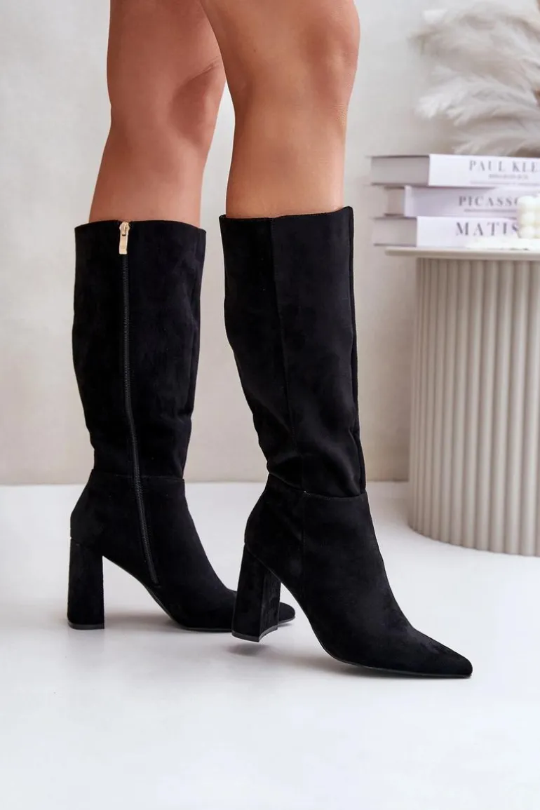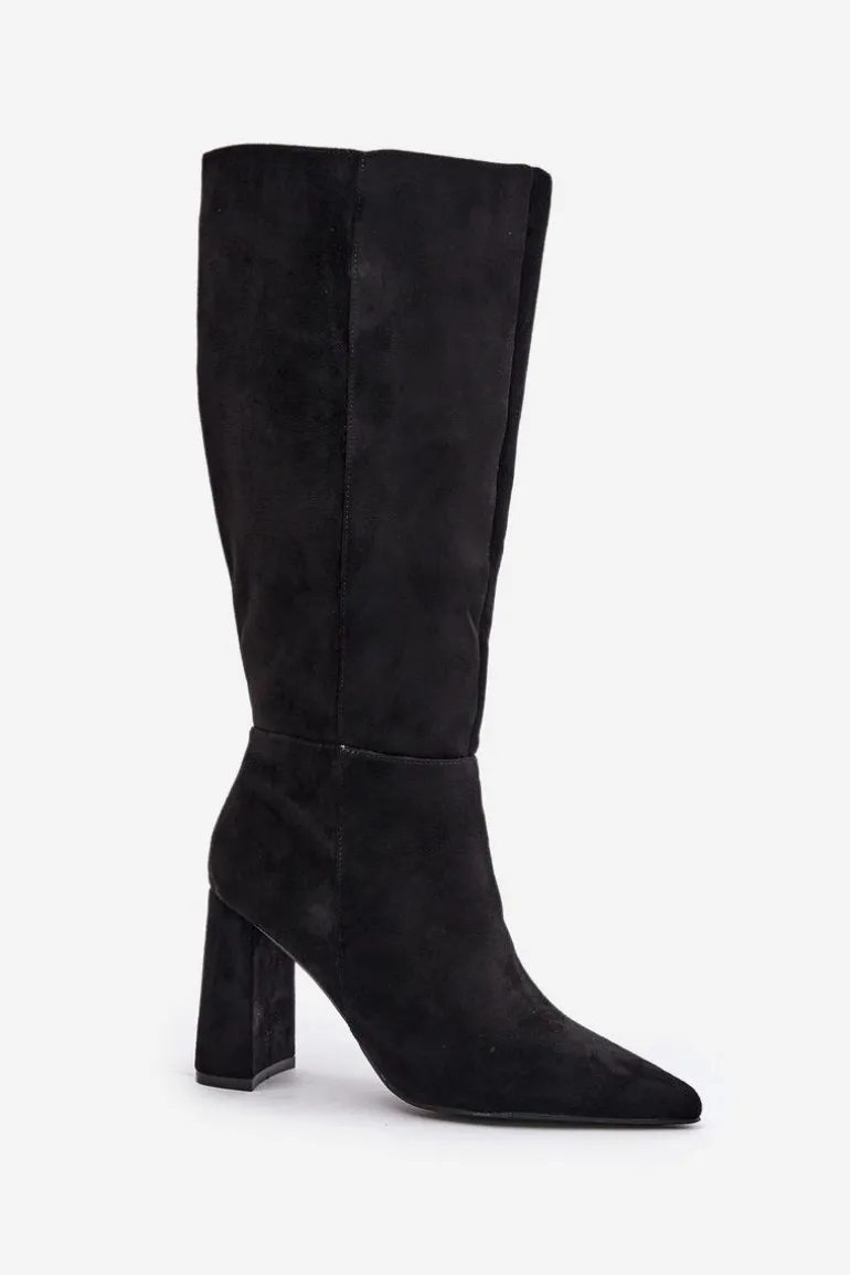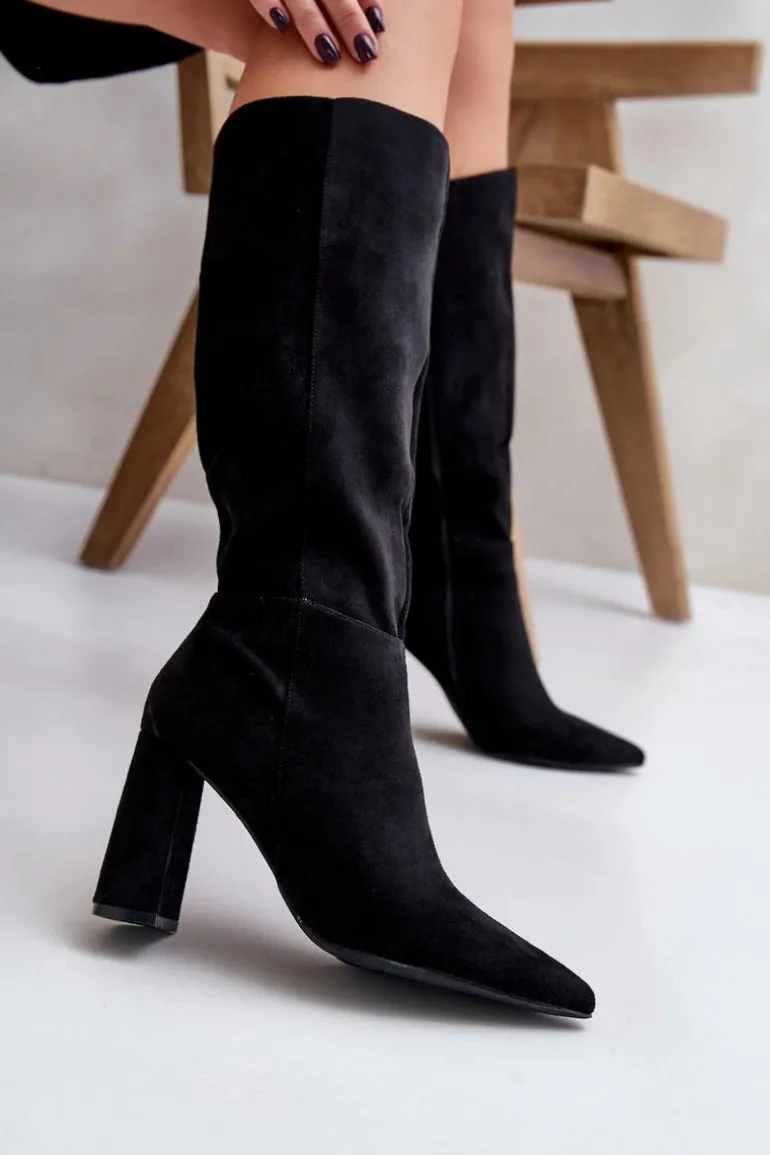 Eleganckie kozaki wykonane z eko zamszu, osadzone na stabilnym obcasie typu słupek, to doskonały wybór na chłodniejsze dni. Zapięcie na zamek ułatwia zakładanie, a szpiczaste noski dodają im wyrafinowanego charakteru. Stylowe i modne, świetnie komponują się z sukienkami i spódnicami, tworząc eleganckie stylizacje na różne okazje. Koniecznie powinnaś je mieć! Przy wyborze rozmiaru prosimy sugerować się tabelą rozmiarów.