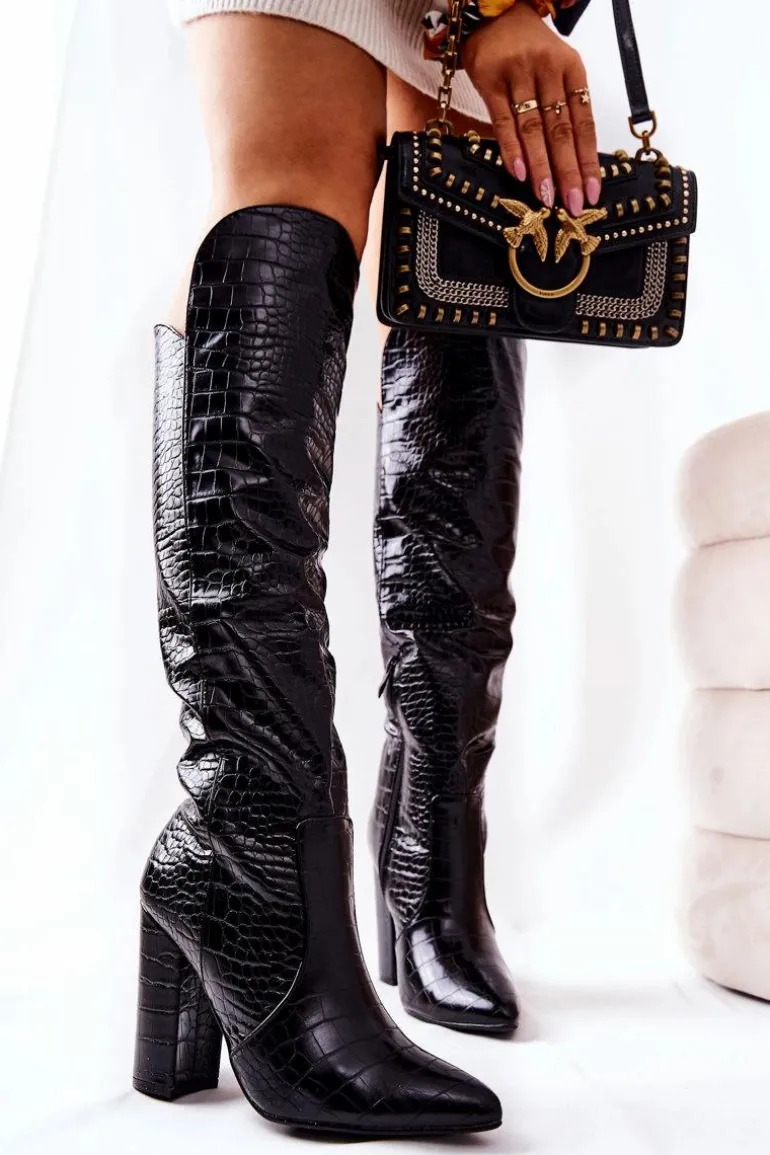 Piękne kozaki na słupku wykonane z eko skóry. Posiadają suwak do połowy cholewki. Nosek w szpic oraz obcas w postaci słupka optycznie wysmuklą nogi. Świetne do wielu stylizacji ! Na pewno zachwycą niejedną miłośniczkę długich kozaków! Nie zwlekaj i kup już dziś! Przy wyborze rozmiaru prosimy sugerować się tabelą rozmiarów.