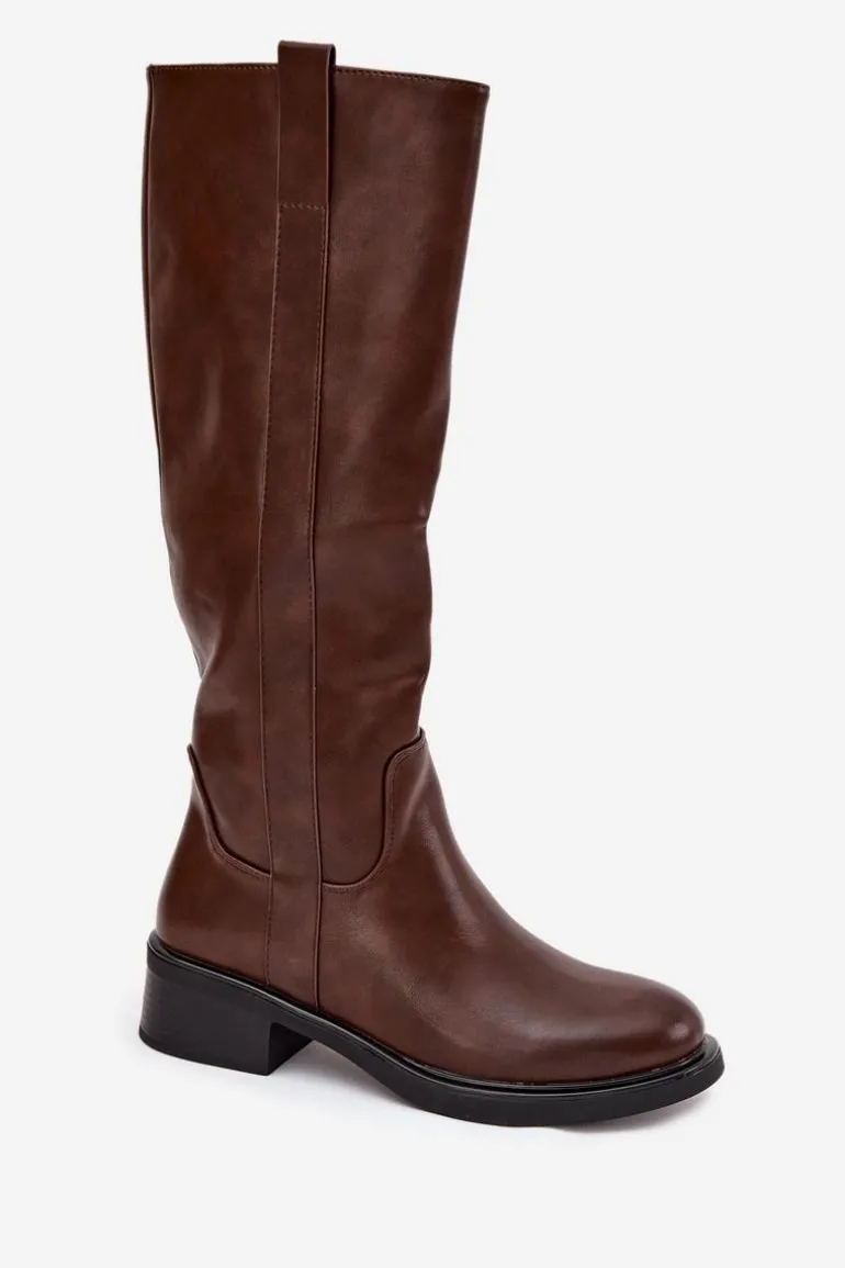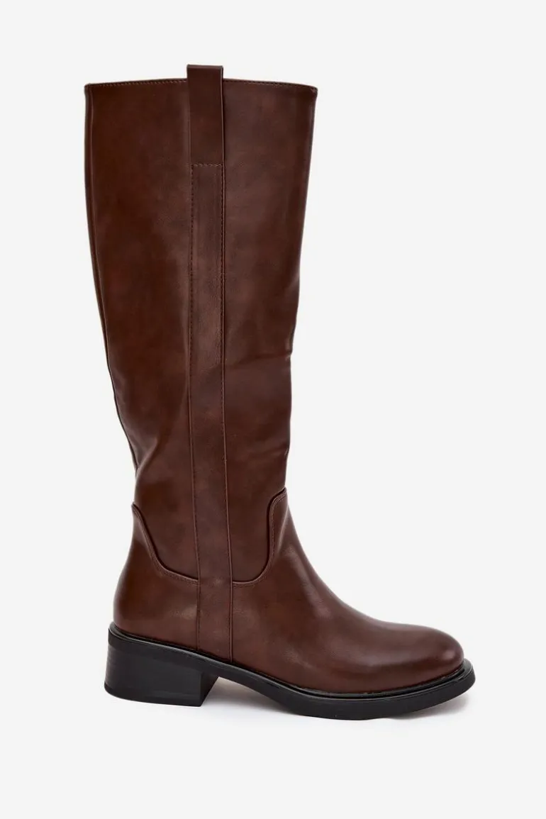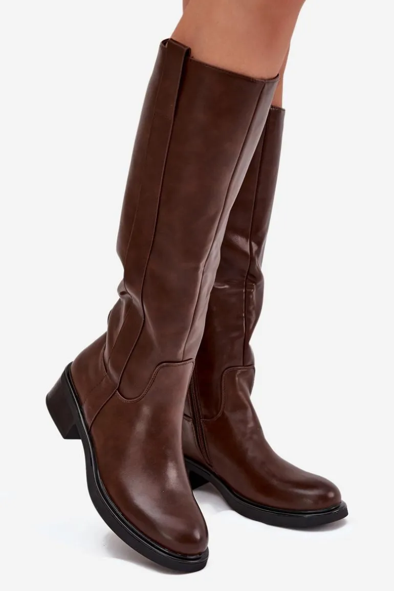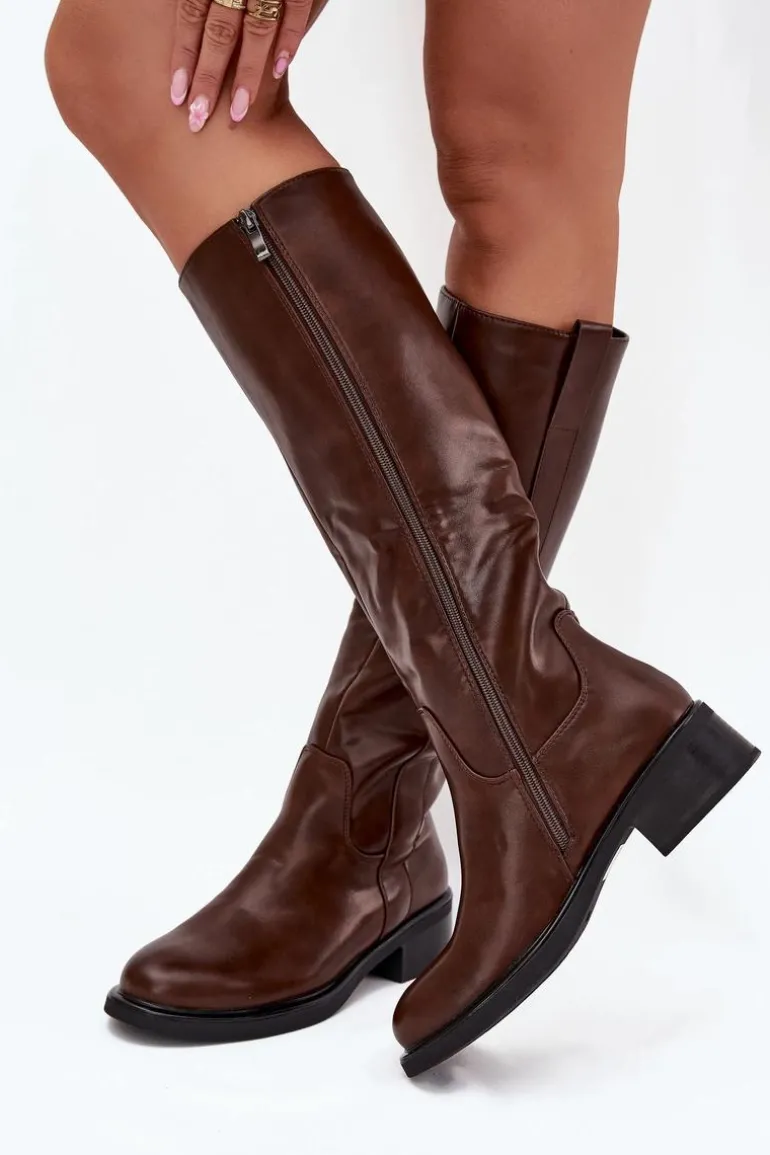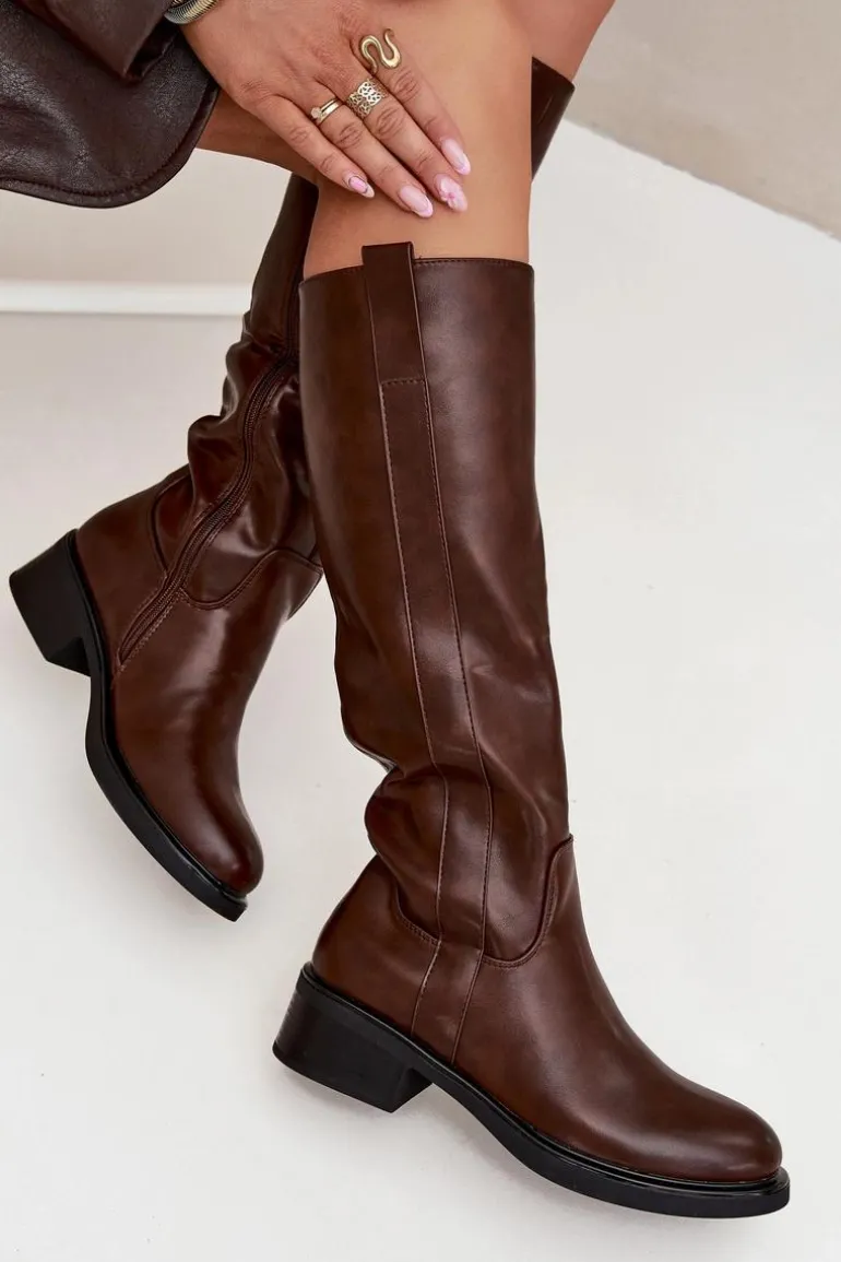 Kozaki oficerki damskie z eko skóry, osadzone na niskim obcasie w formie klocka, to połączenie klasyki z komfortem. Cholewka sięga przed kolano. Zapinane na zamek, co ułatwia ich zakładanie. Ocieplane kocem obuwniczym. Idealne do codziennych stylizacji, doskonale komponują się z sukienkami, spódnicami i spodniami. Przy wyborze rozmiaru prosimy sugerować się tabelą rozmiarów.
