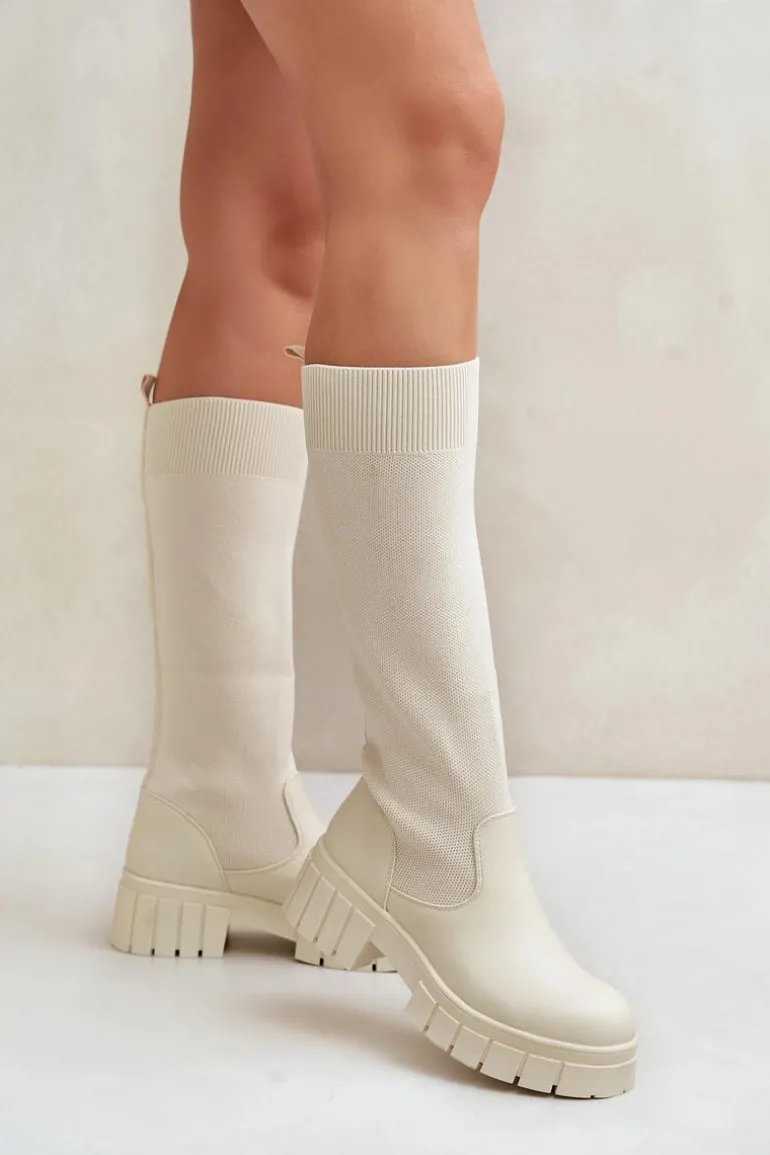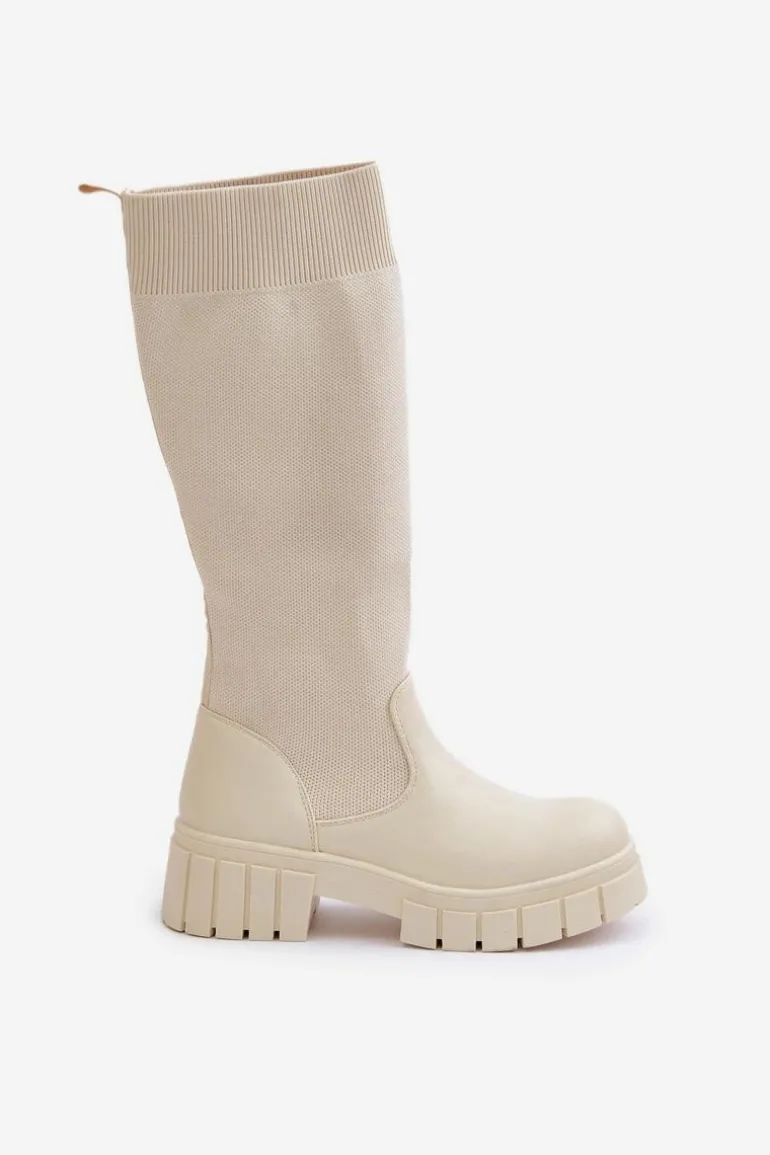 Klasyczne damskie kozaki zostały wykonane z połączenia eko skóry oraz materiału tekstylnego. Osadzone na płaskim obcasie i delikatnej platformie ze żłobieniami. Buty te posiadają ocieplaną wkładkę. Te klasyczne kozaki świetnie będą pasować do jesiennych stylizacji. Modny fason, który powinnaś mieć! Przy wyborze rozmiaru prosimy kierować tabelą rozmiarów.