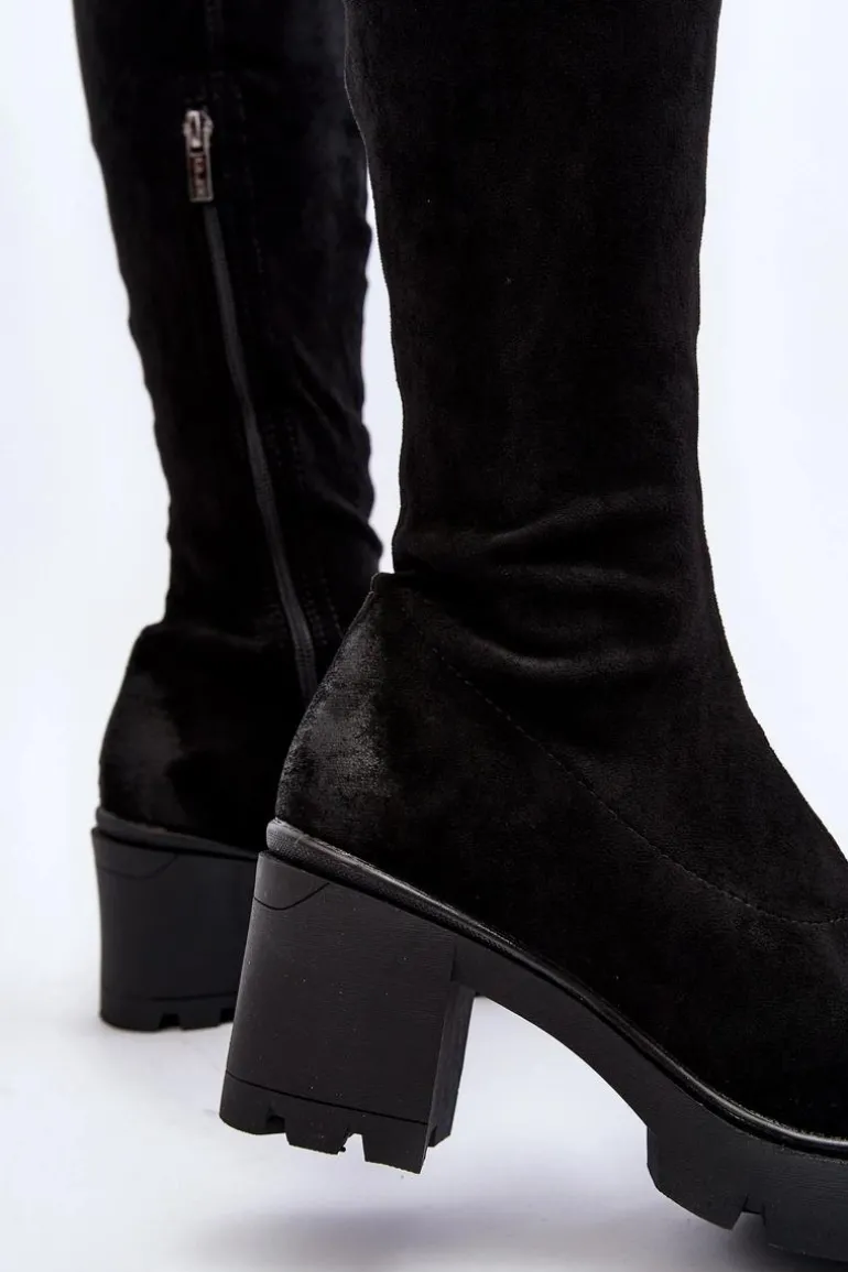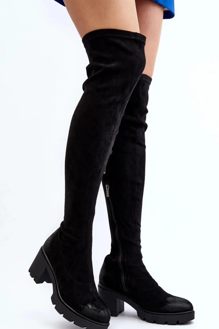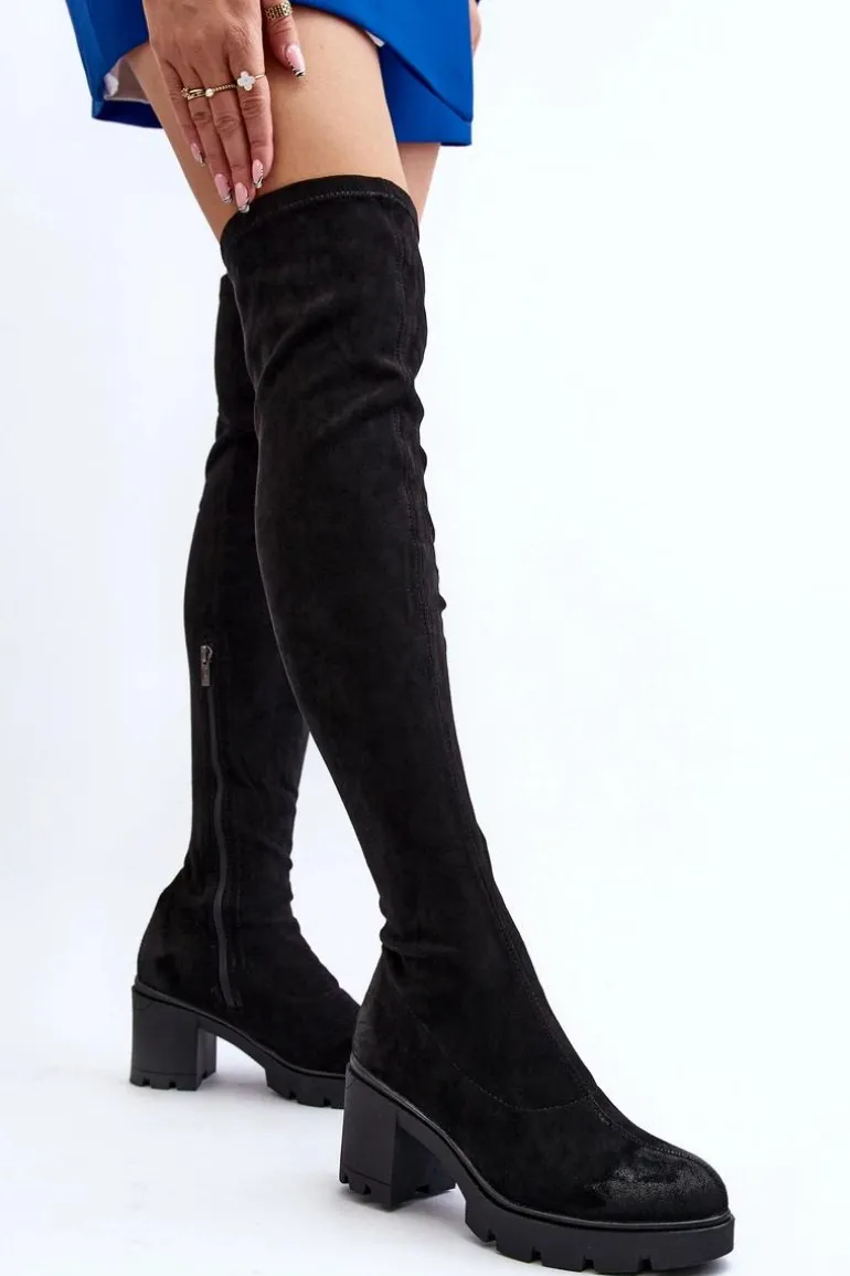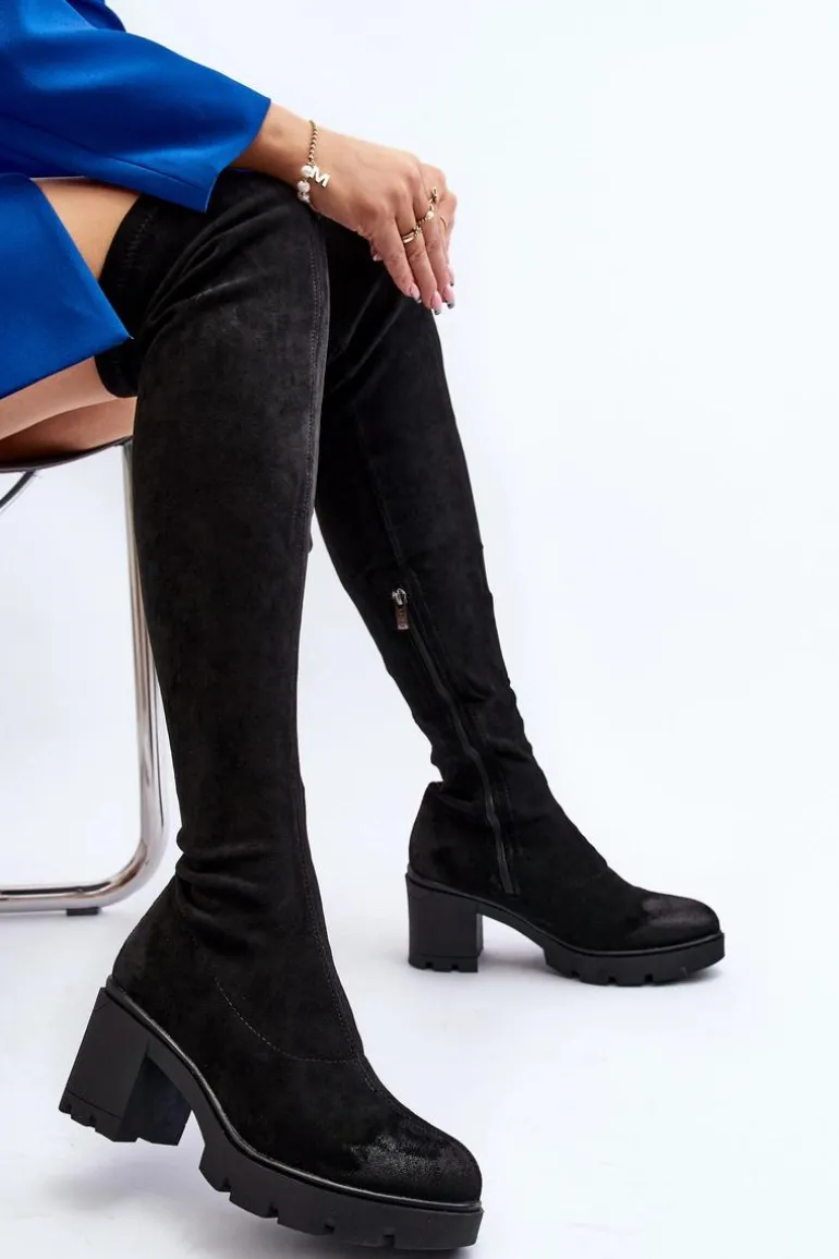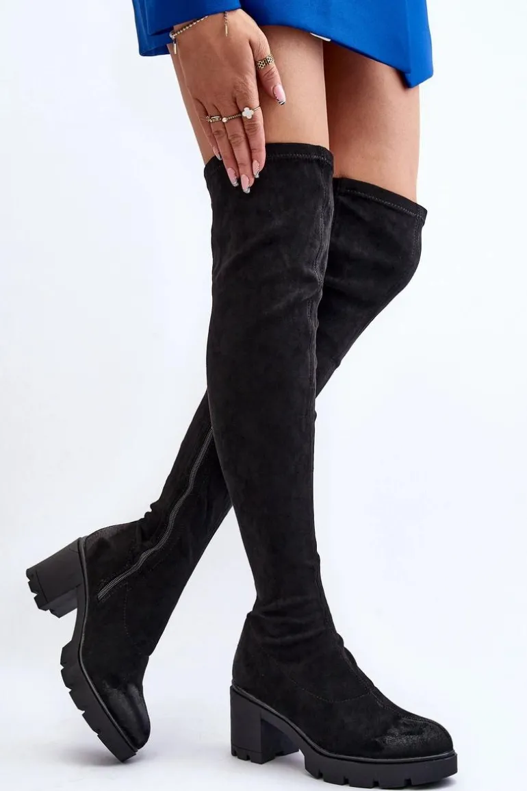 Kozaki damskie zostały wykonane z wysokiej jakości eko zamszu z dbałością o szczegóły. Osadzone na grubej podeszwie oraz obcasie w postaci słupka. Model wsuwany, z dodatkowym zapięciem na suwak. Noski zaokrąglone. Ocieplone wyłącznie na wysokości stopy lekkim futerkiem. Cholewka za kolano. Koniecznie musisz je mieć! Przy wyborze rozmiaru prosimy sugerować się tabelą rozmiarów.