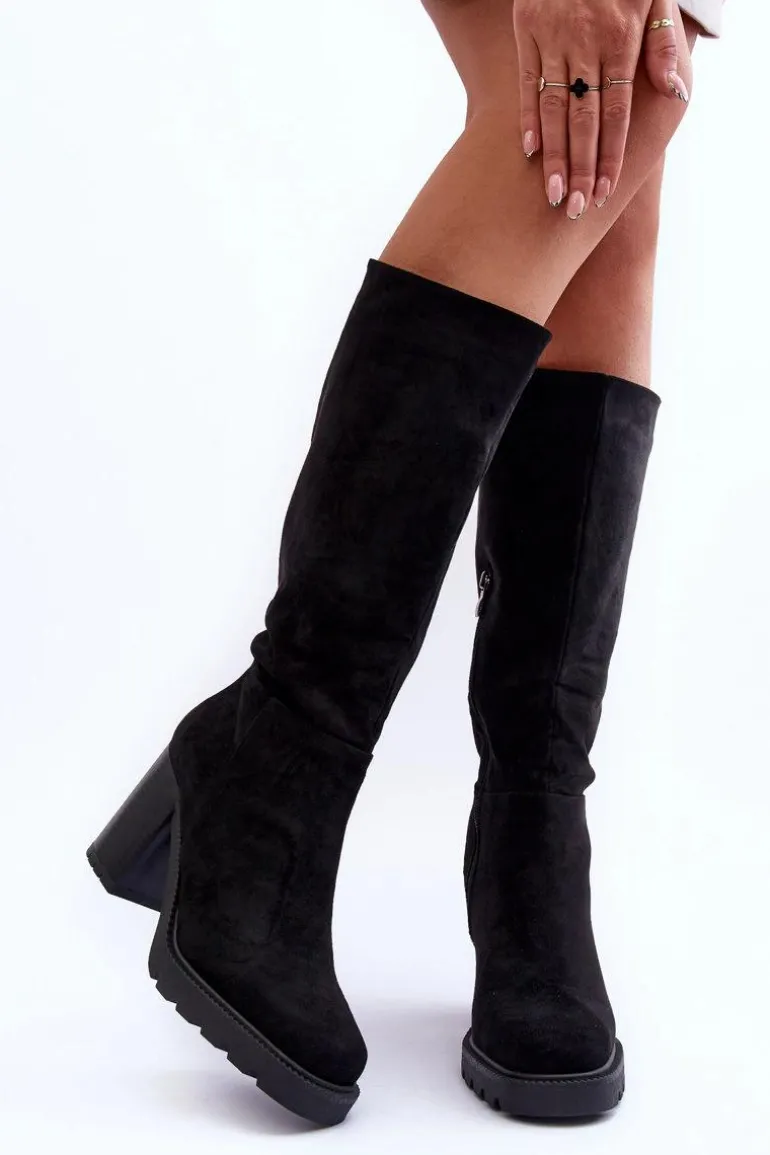 Kozaki damskie wykonane z eko zamszu. Zapinane na suwak po wewnętrznej stronie buta. Osadzone na masywnym obcasie. Model z cholewką przed kolano. Zapiętek usztywniany. Wnętrze ocieplone kocem obuwniczym. Wykorzystasz je w wielu stylizacjach! Koniecznie muszą być Twoje! Przy wyborze rozmiaru prosimy sugerować się tabelą rozmiarów.