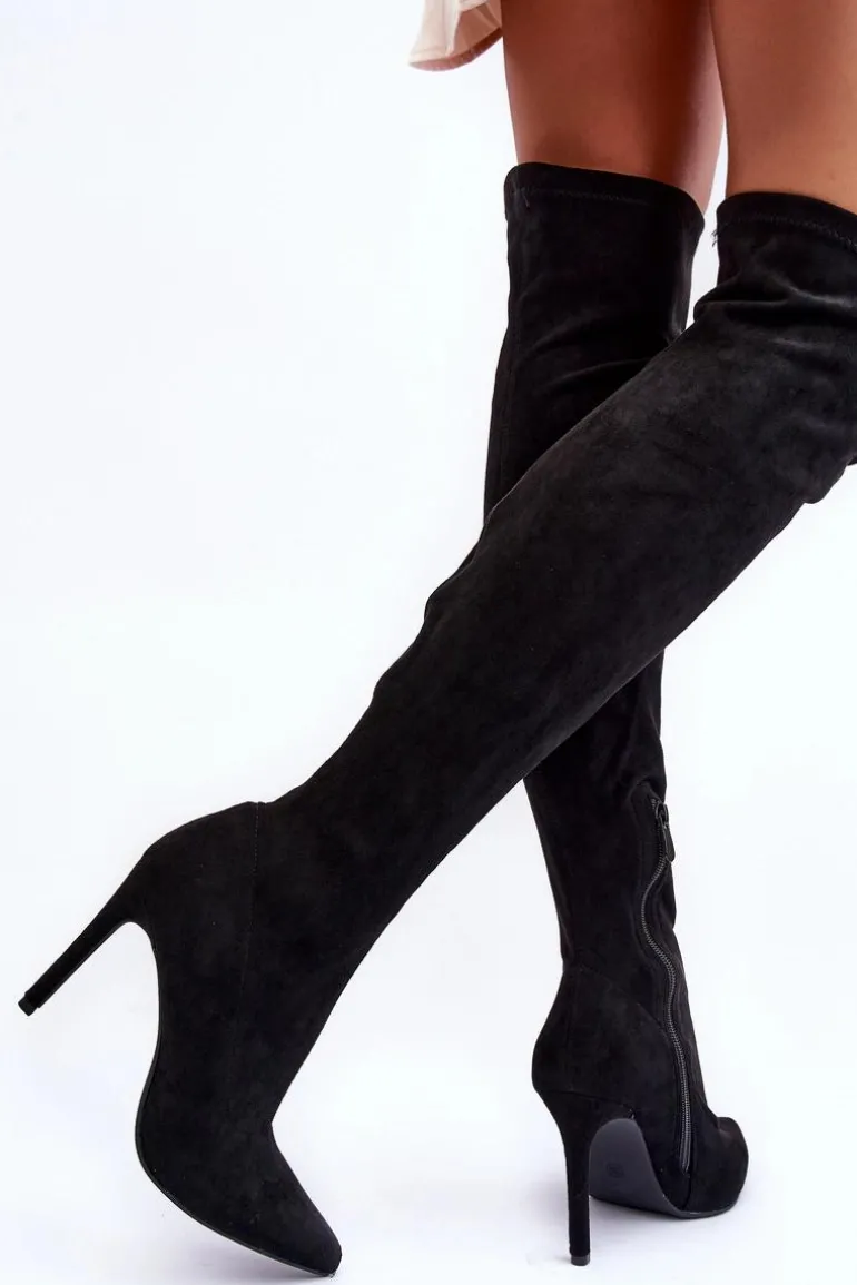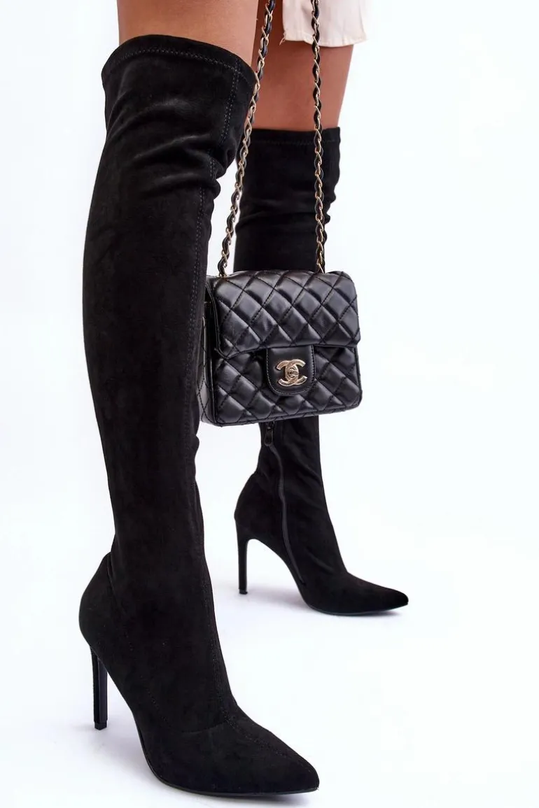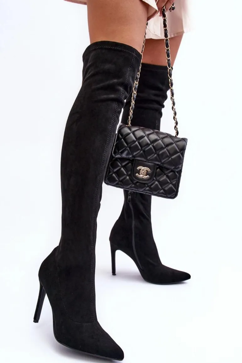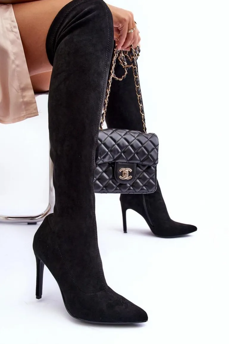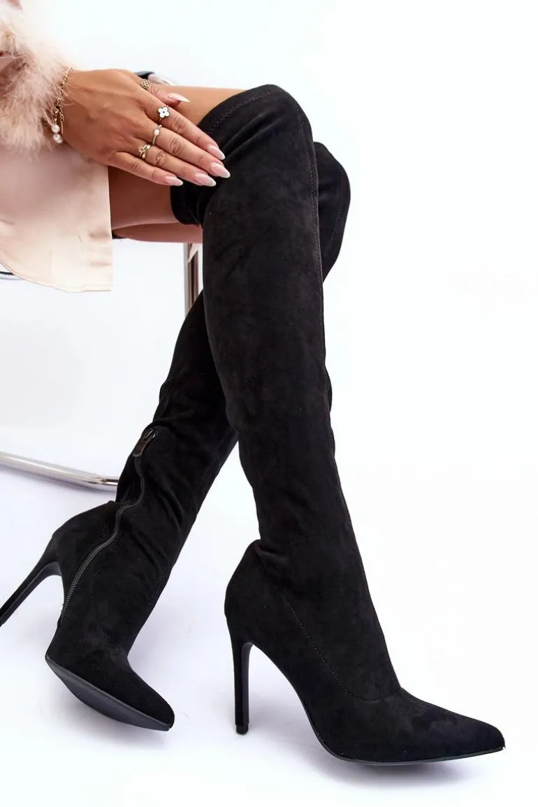 Kozaki Zamszowe Za Kolano Na Szpilce Czarne Calfi