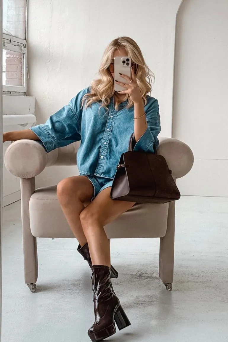 Botki damskie wykonane z eko skóry. Wyróżniają się połyskującym wykończeniem oraz dekoracyjnymi przeszyciami na cholewce, które dodają im charakteru. Osadzone na stabilnym słupkowym obcasie i praktycznej platformie, optycznie wysmuklają sylwetkę, a jednocześnie zapewniają komfort noszenia. Buty zapinane są na zamek, co ułatwia zakładanie i zdejmowanie. Wnętrze zostało ocieplone na wysokości stopy, dzięki czemu sprawdzą się w chłodniejsze dni. To idealny model do stylizacji zarówno ze spodniami, jak i sukienką.