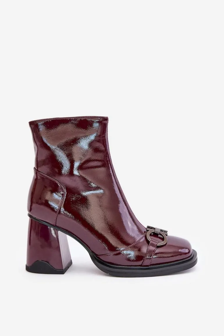 Damskie botki wykonane z lakierowanej eko skóry to stylowy wybór na chłodniejsze dni. Osadzone na stabilnym obcasie typu słupek, dodają sylwetce elegancji i nowoczesnego wyglądu. Model posiada kwadratowe noski oraz ozdoba z przodu podkreślają modny charakter. Ocieplane kocem obuwniczym, zapewniają komfort i ciepło, a zapięcie na zamek ułatwia szybkie zakładanie. Idealne do eleganckich i wyjściowych stylizacji. Przy wyborze rozmiaru prosimy sugerować się tabelą rozmiarów.