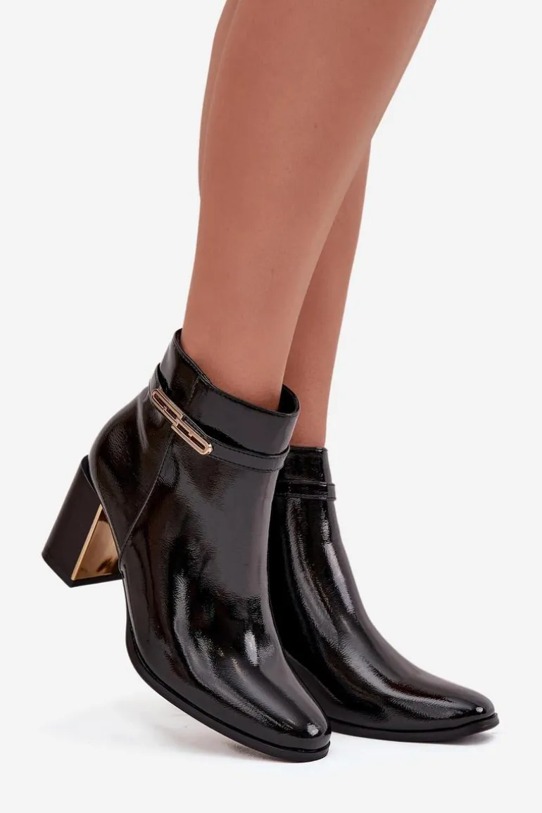 Lakierowane botki na słupku z paskiem czarne Dorelia