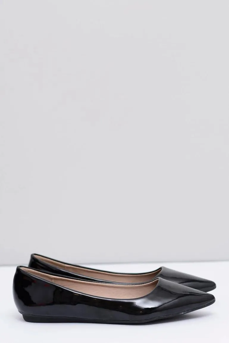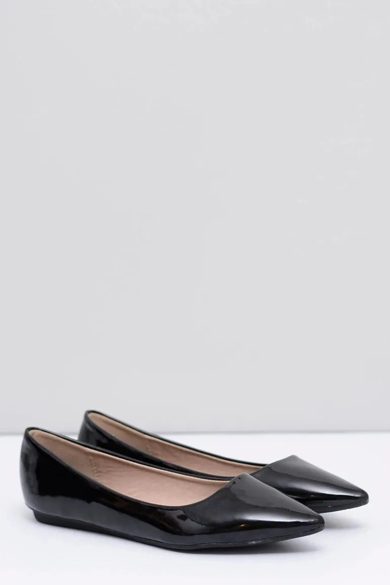 Lakierowane Czarne Balerinki w Szpic Elonde