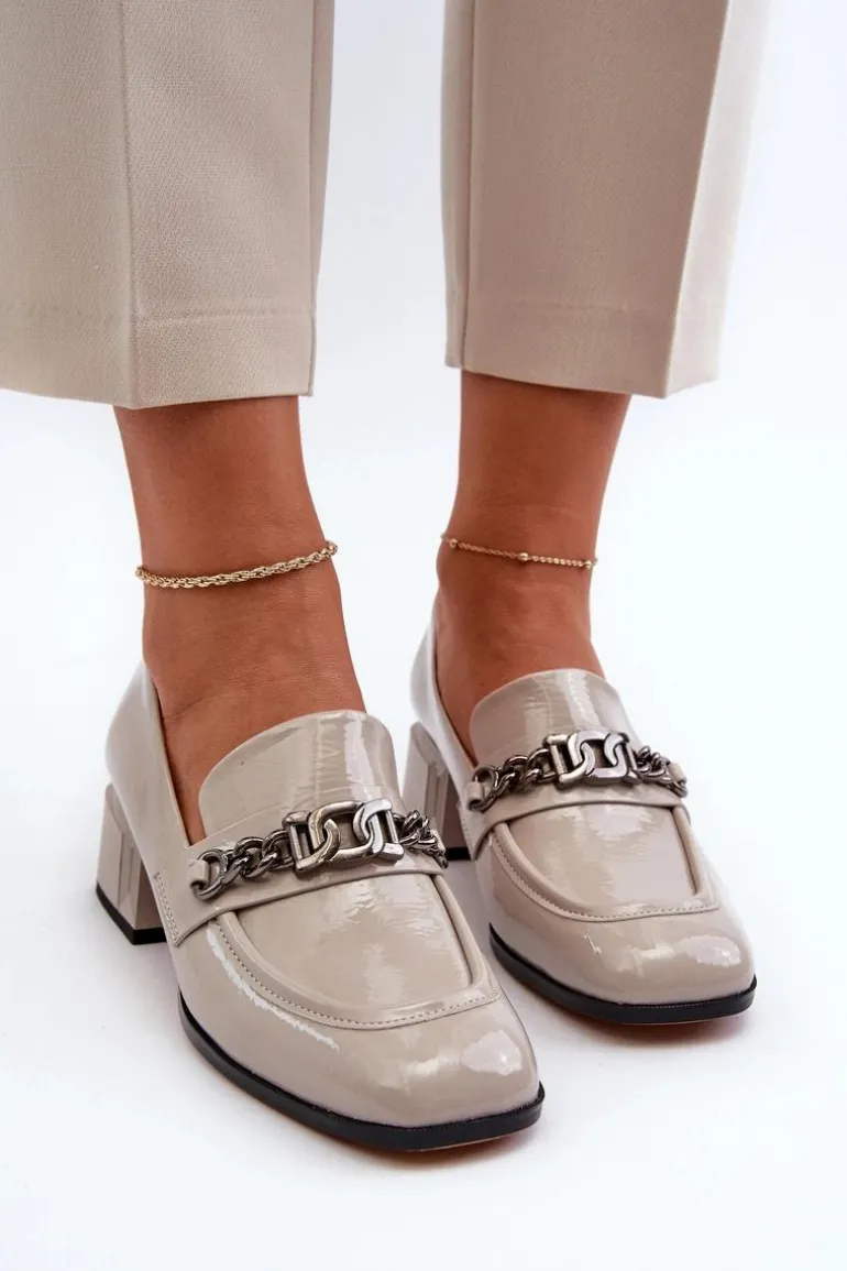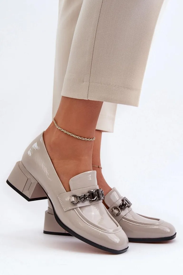 Lakierowane Czółenka Na Klocku Szare S.Barski MR38-960