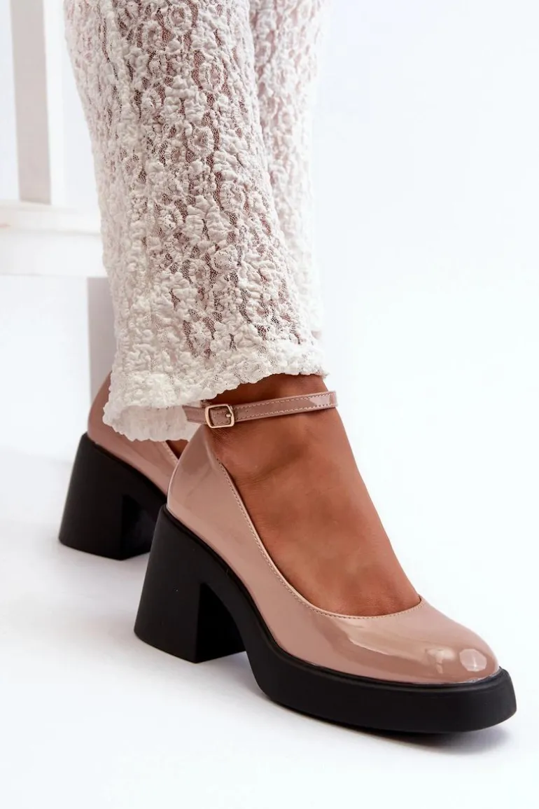 Wyjątkowe czółenka wykonane ze skóry ekologicznej. Zapinane na regulowany pasek ze sprzączką, co zapewnia idealne dopasowanie do stopy. Osadzone na masywnym, wyższym obcasie w postaci klocka. Zapiętek jest usztywniany, a nosek kwadratowy. Dodatkowo buty posiadają delikatną platformę. Przy wyborze rozmiaru prosimy sugerować się tabelą rozmiarów.