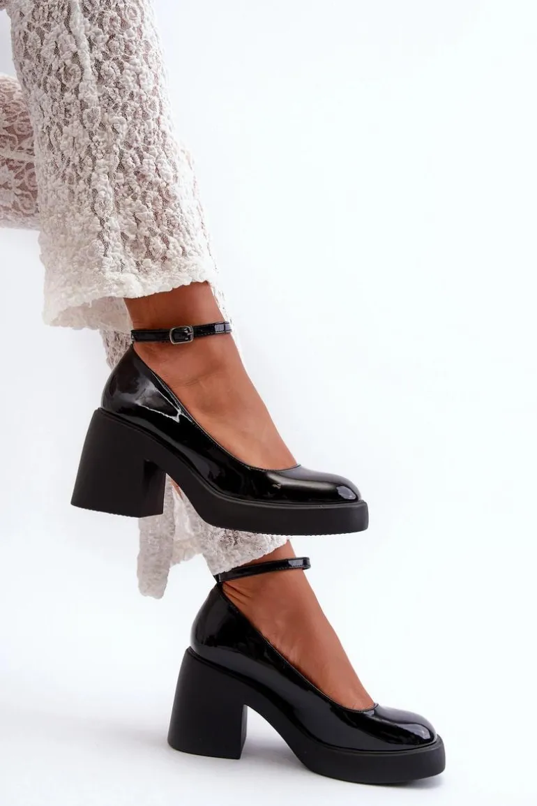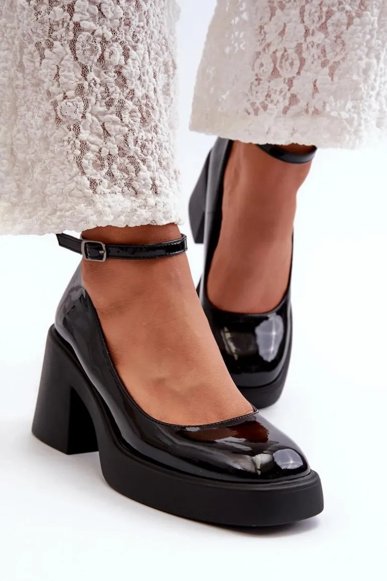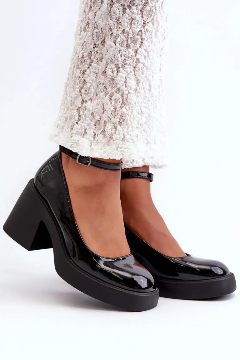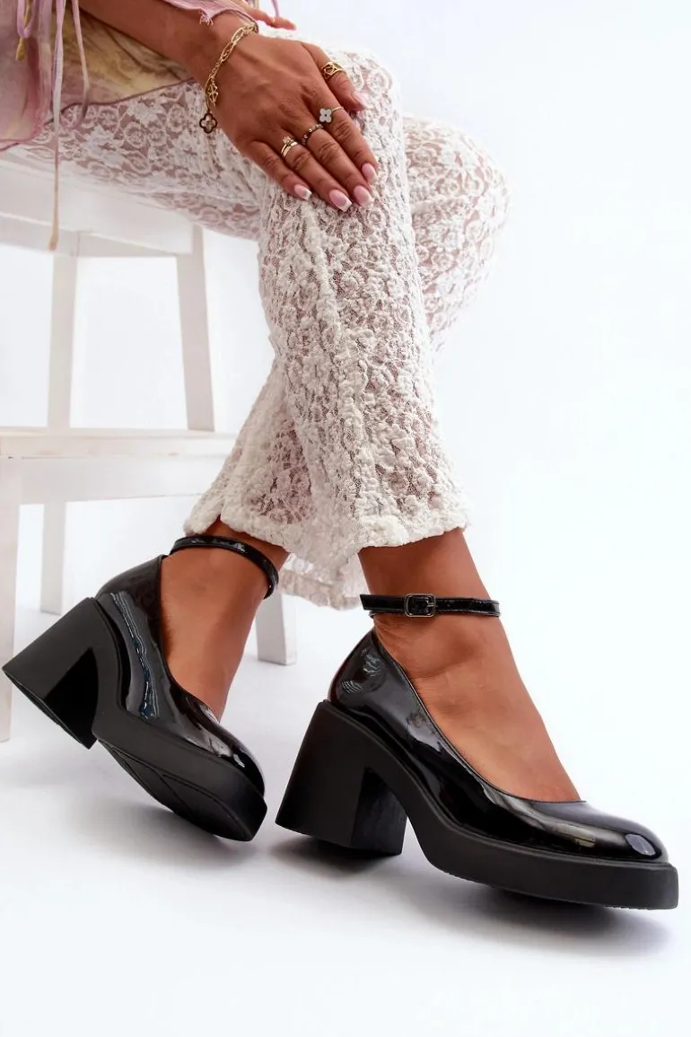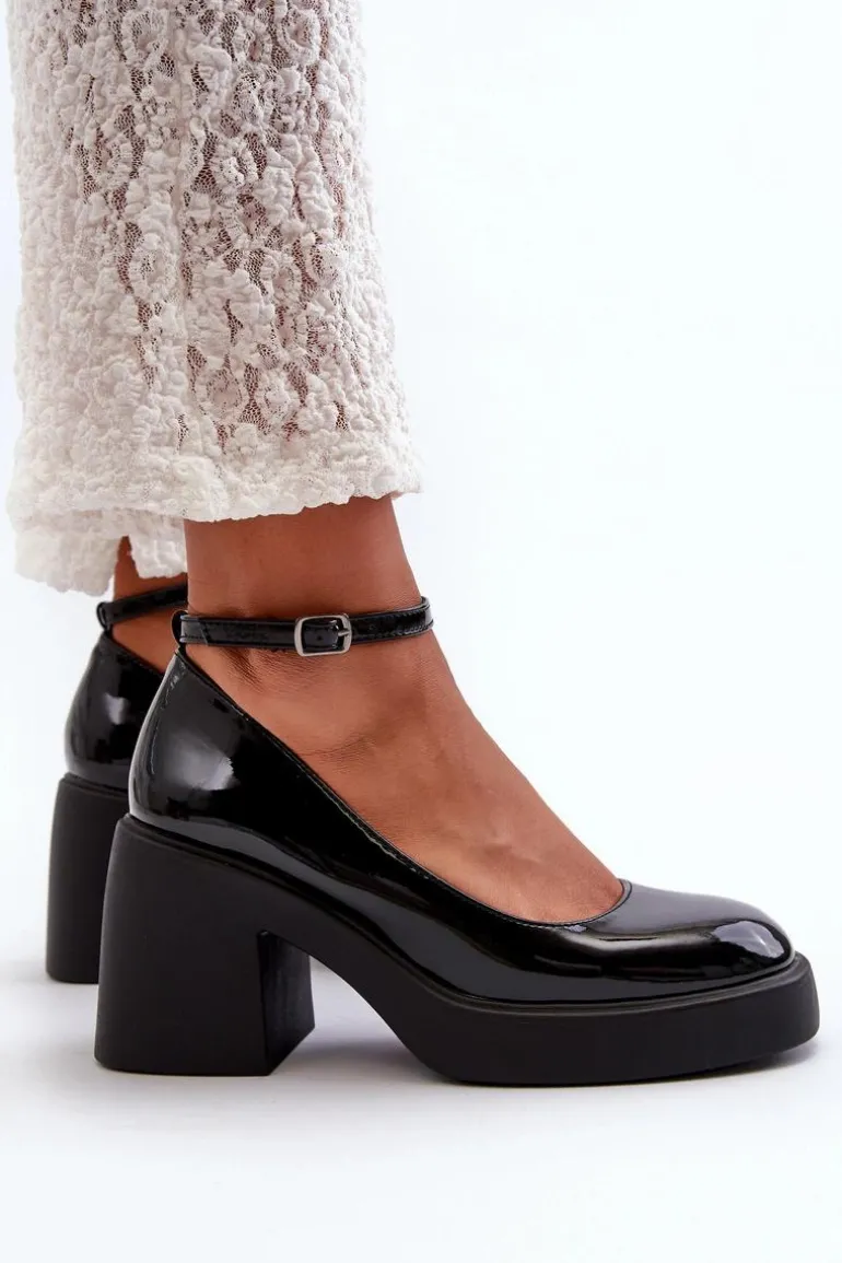 Wyjątkowe czółenka wykonane ze skóry ekologicznej. Zapinane na regulowany pasek ze sprzączką, co zapewnia idealne dopasowanie do stopy. Osadzone na masywnym, wyższym obcasie w postaci klocka. Zapiętek jest usztywniany, a nosek kwadratowy. Dodatkowo buty posiadają delikatną platformę. Przy wyborze rozmiaru prosimy sugerować się tabelą rozmiarów.