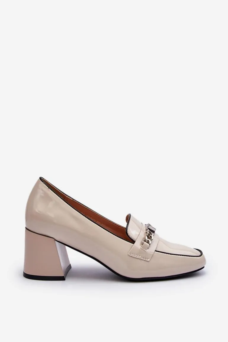 Skórzane czółenka powinny znaleźć się w szafie każdej kobiety. Model ten osadzony został na niskim, stabilnym obcasie. Usztywniony zapiętek zapewnia dodatkową stabilność i wsparcie dla stopy, co jest szczególnie istotne podczas noszenia. Z przodu znajduje się paseczek z ozdobą. Noski zaokrąglone. Wkładka ze skóry naturalnej zapewni wygodę podczas użytkowania. Koniecznie powinnaś je mieć! Przy wyborze rozmiaru prosimy sugerować się tabelą rozmiarów.