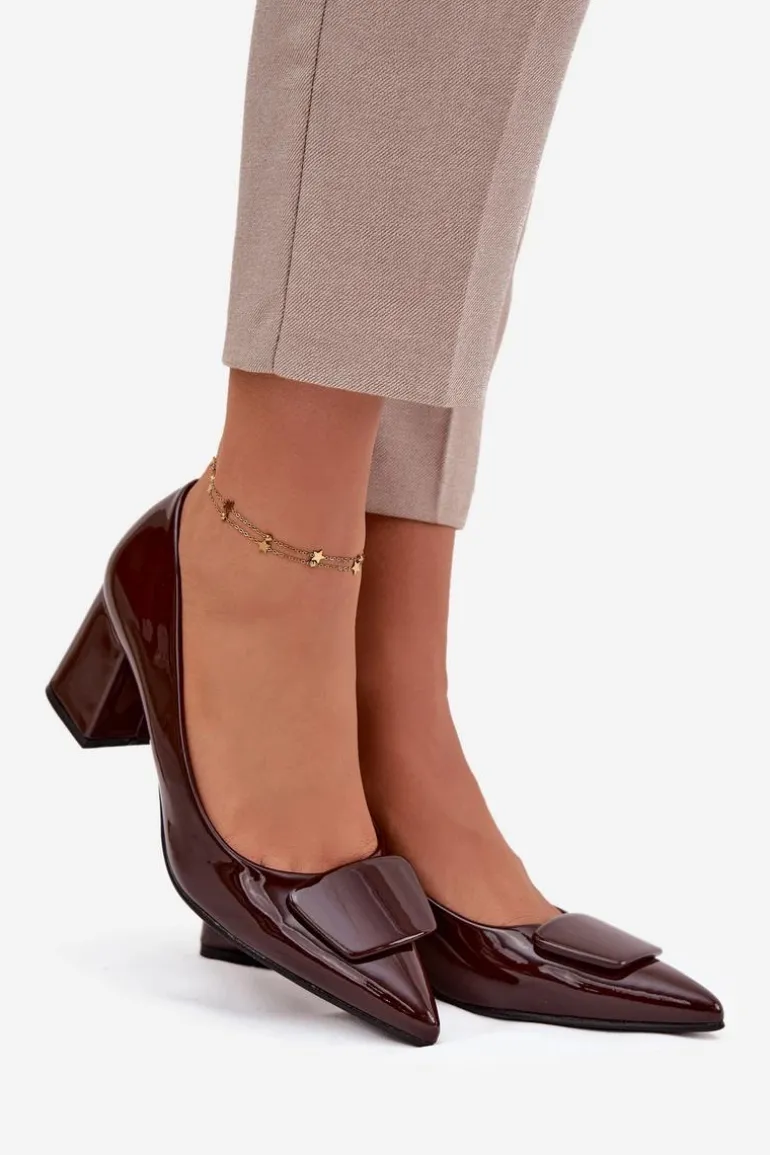 Czółenka damskie wykonane z eko skóry to klasyczna propozycja, która łączy ponadczasową elegancję z komfortem noszenia. Model osadzony na stabilnym obcasie typu słupek zapewnia wygodę przez cały dzień, a szpiczaste noski optycznie wydłużają nogi, podkreślając kobiecy charakter. Z przodu znajduje się ozdobny detal. To idealne czółenka do eleganckich stylizacji – świetnie sprawdzą się zarówno w pracy, jak i podczas wyjątkowych okazji, doskonale komponując się z sukienkami, spódnicami i klasycznymi spodniami. Przy wyborze rozmiaru prosimy kierować się tabelą rozmiarów.
