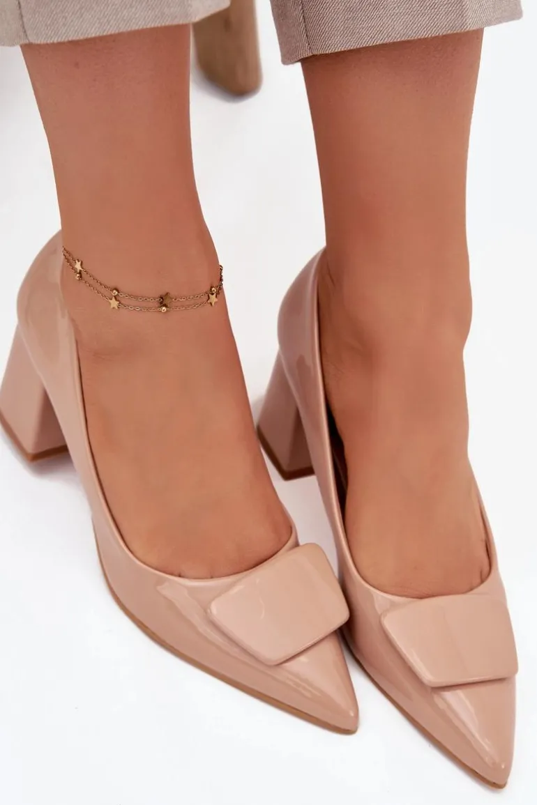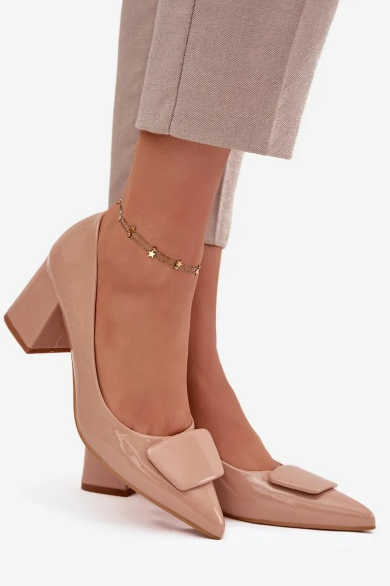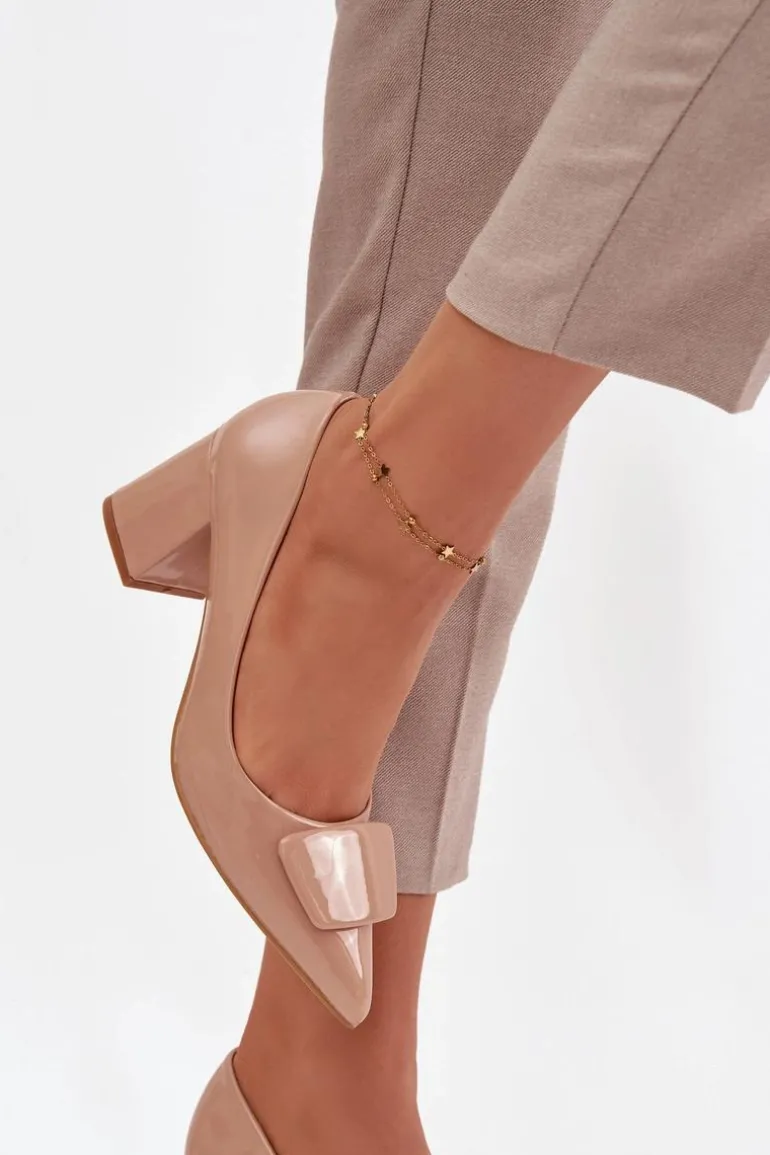 Czółenka damskie wykonane z eko skóry to klasyczna propozycja, która łączy ponadczasową elegancję z komfortem noszenia. Model osadzony na stabilnym obcasie typu słupek zapewnia wygodę przez cały dzień, a szpiczaste noski optycznie wydłużają nogi, podkreślając kobiecy charakter. Z przodu znajduje się ozdobny detal. To idealne czółenka do eleganckich stylizacji – świetnie sprawdzą się zarówno w pracy, jak i podczas wyjątkowych okazji, doskonale komponując się z sukienkami, spódnicami i klasycznymi spodniami. Przy wyborze rozmiaru prosimy kierować się tabelą rozmiarów.