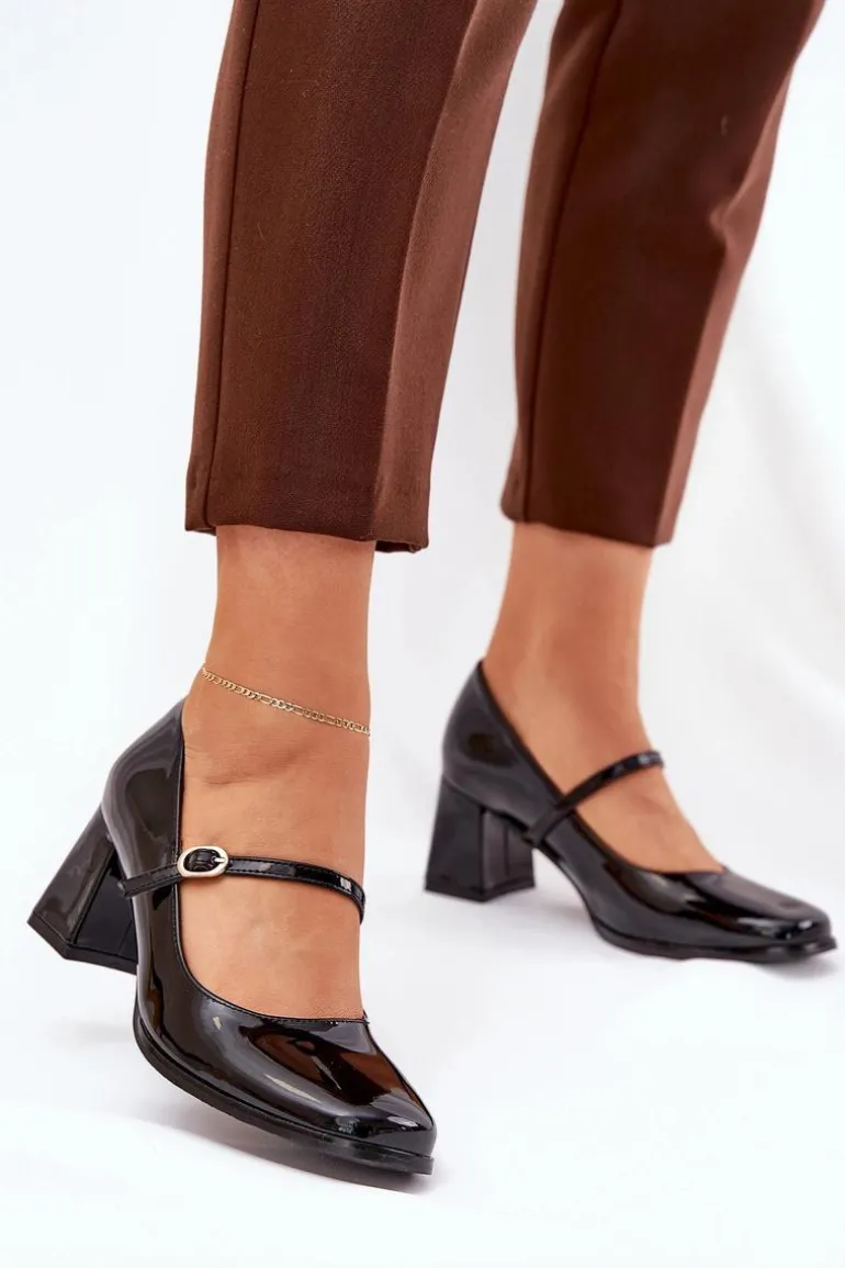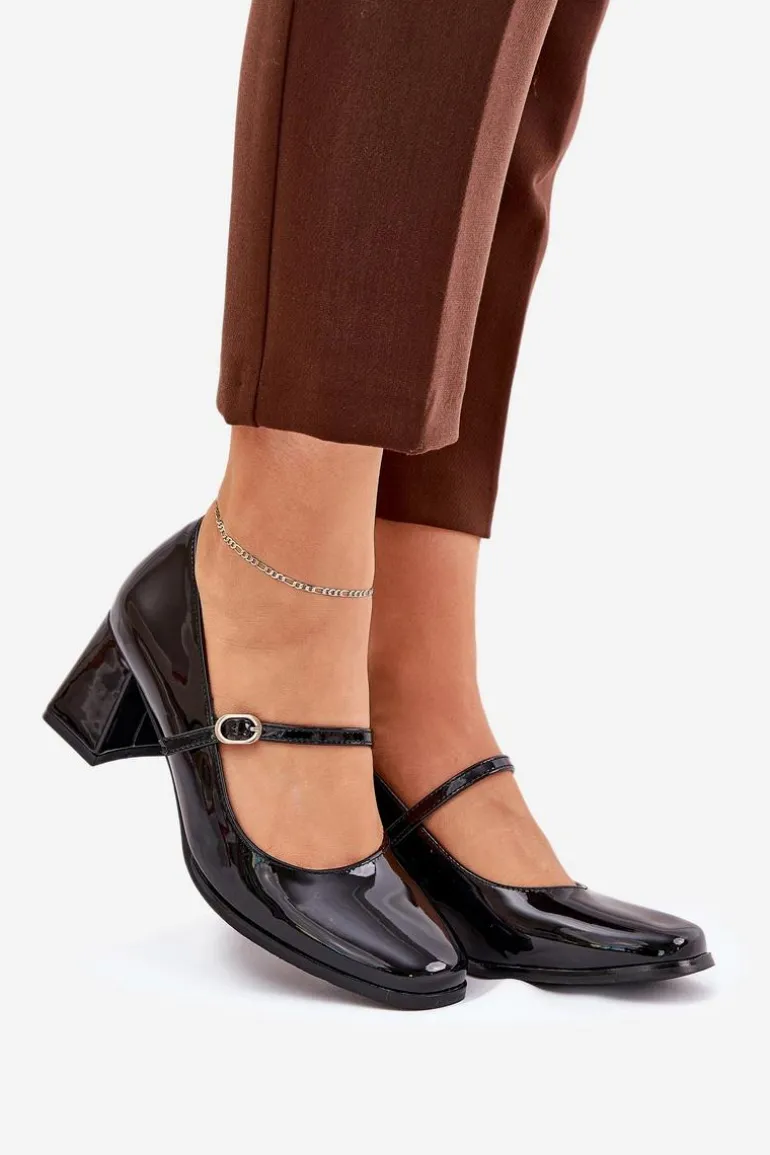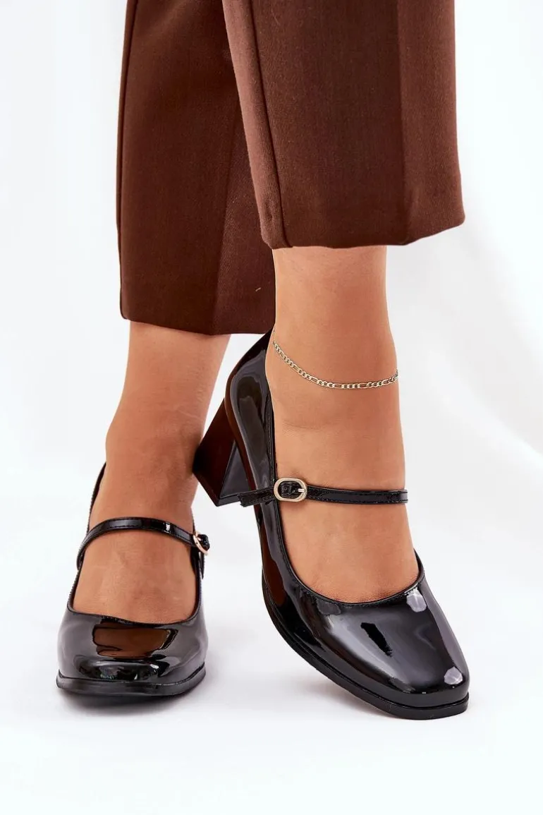 Czółenka wykonane z lakierowanej eko skóry, idealne na każdą okazję. Osadzone na stabilnym słupku, zapewniają komfort i styl przez cały dzień. Model wyróżnia się cienkim paseczkiem ze sprzączką na śródstopiu. To uniwersalny wybór, który doskonale uzupełni zarówno eleganckie, jak i casualowe stylizacje. Przy wyborze rozmiaru prosimy kierować się tabelą rozmiarów