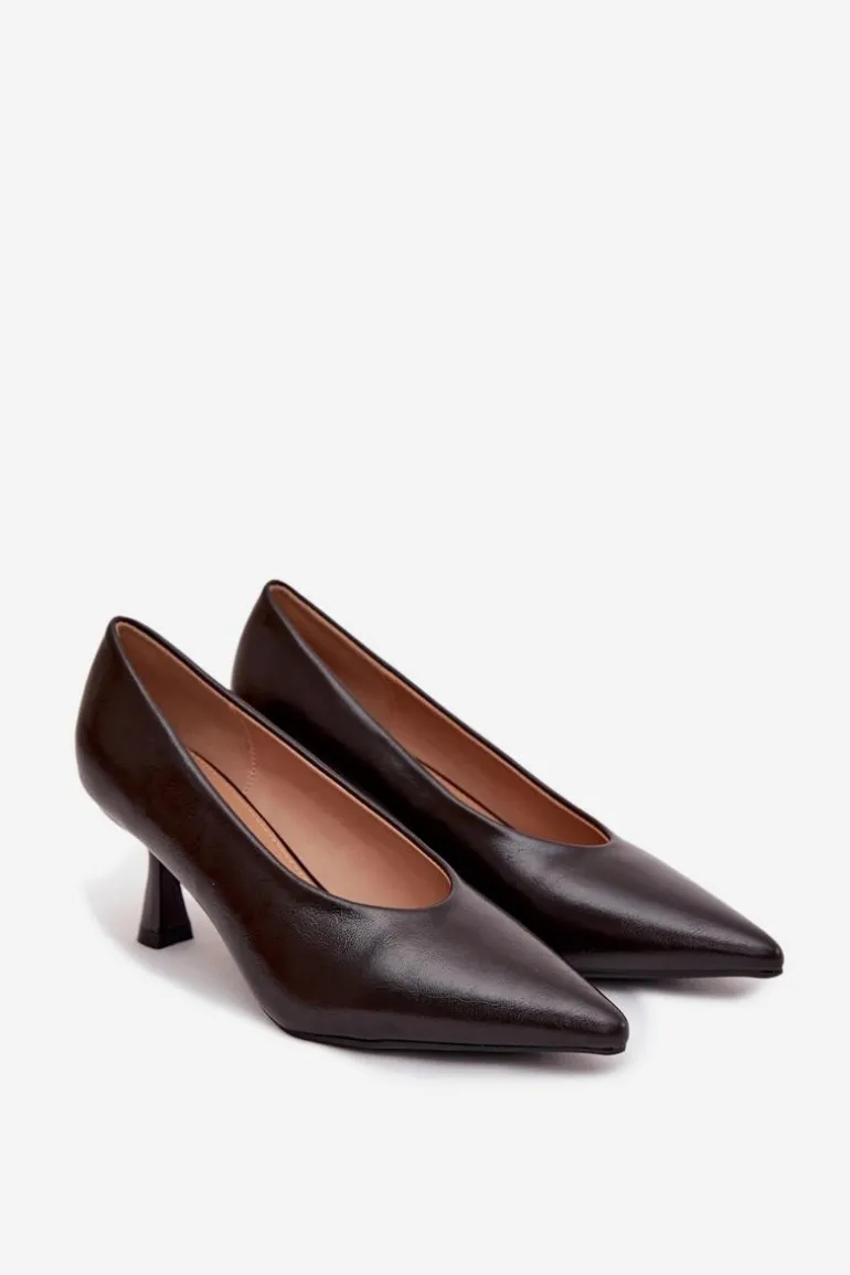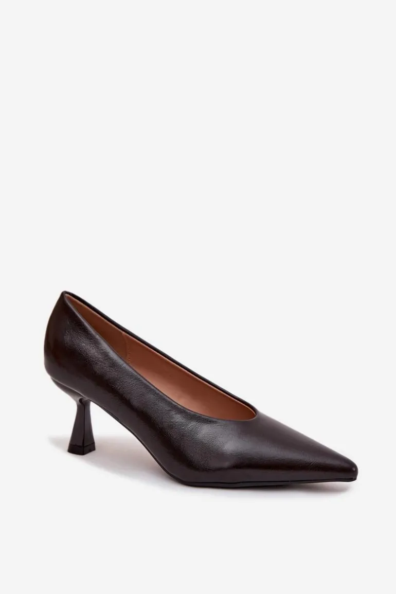 Eleganckie czółenka wykonane z eko skóry to klasyczna propozycja dla kobiet, które cenią styl i wygodę. Smukła linia buta ze szpiczastymi noskami pięknie wysmukla stopę i dodaje sylwetce lekkości, podkreślając kobiecy charakter obuwia. Model został osadzony na stabilnym obcasie typu rozszerzana szpilka, który łączy elegancki wygląd ze zwiększoną wygodą noszenia – zapewnia pewność kroku, a jednocześnie dodaje nowoczesnego akcentu. Dzięki swojemu ponadczasowemu fasonowi czółenka te doskonale sprawdzą się zarówno w stylizacjach biurowych, jak i podczas wyjątkowych okazji. Idealnie komponują się z sukienkami, spódnicami czy eleganckimi spodniami, stanowiąc niezawodne dopełnienie kobiecej garderoby. Przy wyborze rozmiaru prosimy kierować się tabelą rozmiarów.