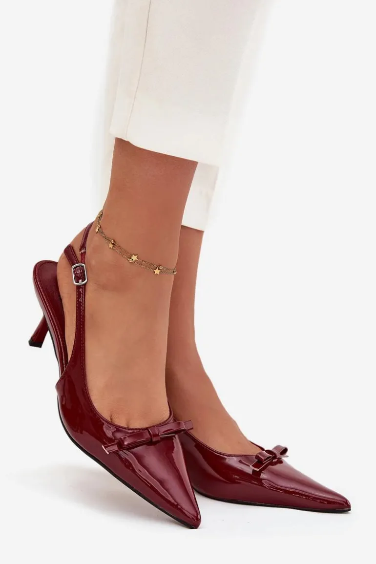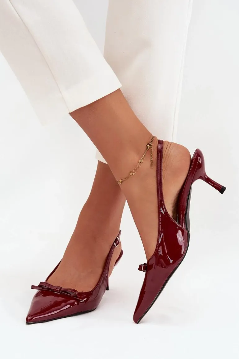 Eleganckie czółenka damskie wykonane z eko skóry to klasyka w kobiecym wydaniu. Smukła szpilka i szpiczaste noski pięknie wysmuklają nogi, a kokardka z przodu dodaje butom subtelnego uroku. Model zapinany jest na sprzączkę z regulowanym paskiem, co zapewnia dobre dopasowanie i wygodę noszenia. Idealne zarówno do eleganckich stylizacji, jak i na wyjątkowe okazje. Przy wyborze rozmiaru prosimy kierować się tabelą rozmiarów