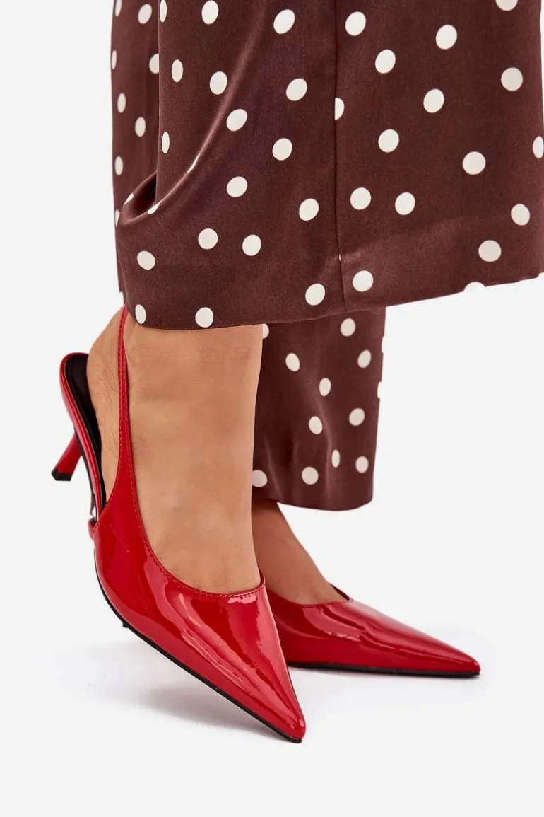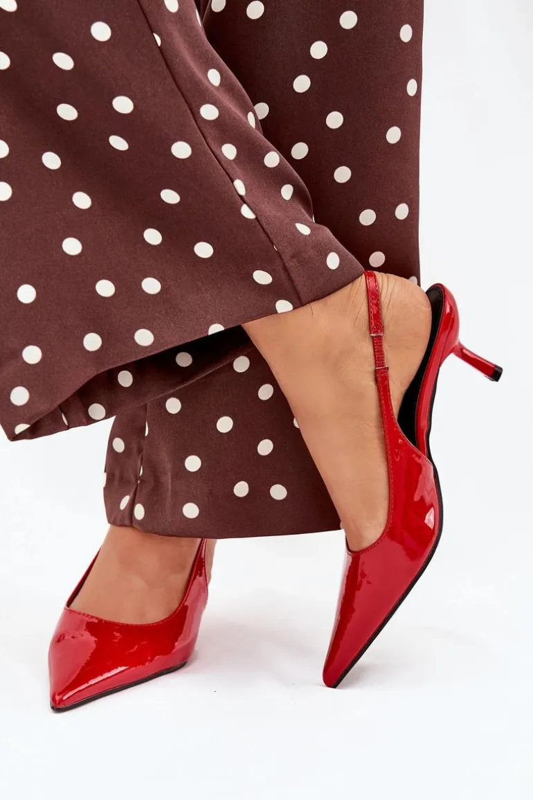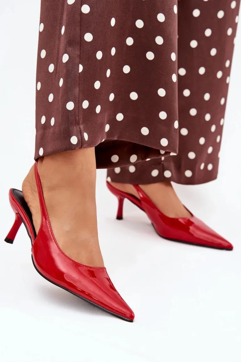 Lakierowane Czółenka Na Szpilce Z Odkrytą Piętą Czerwone Talira