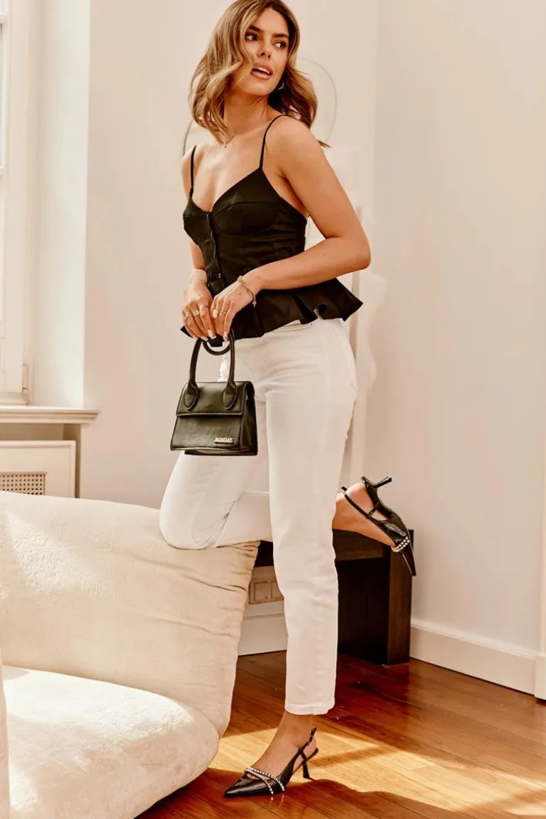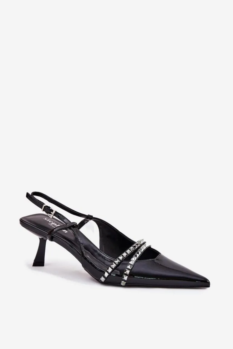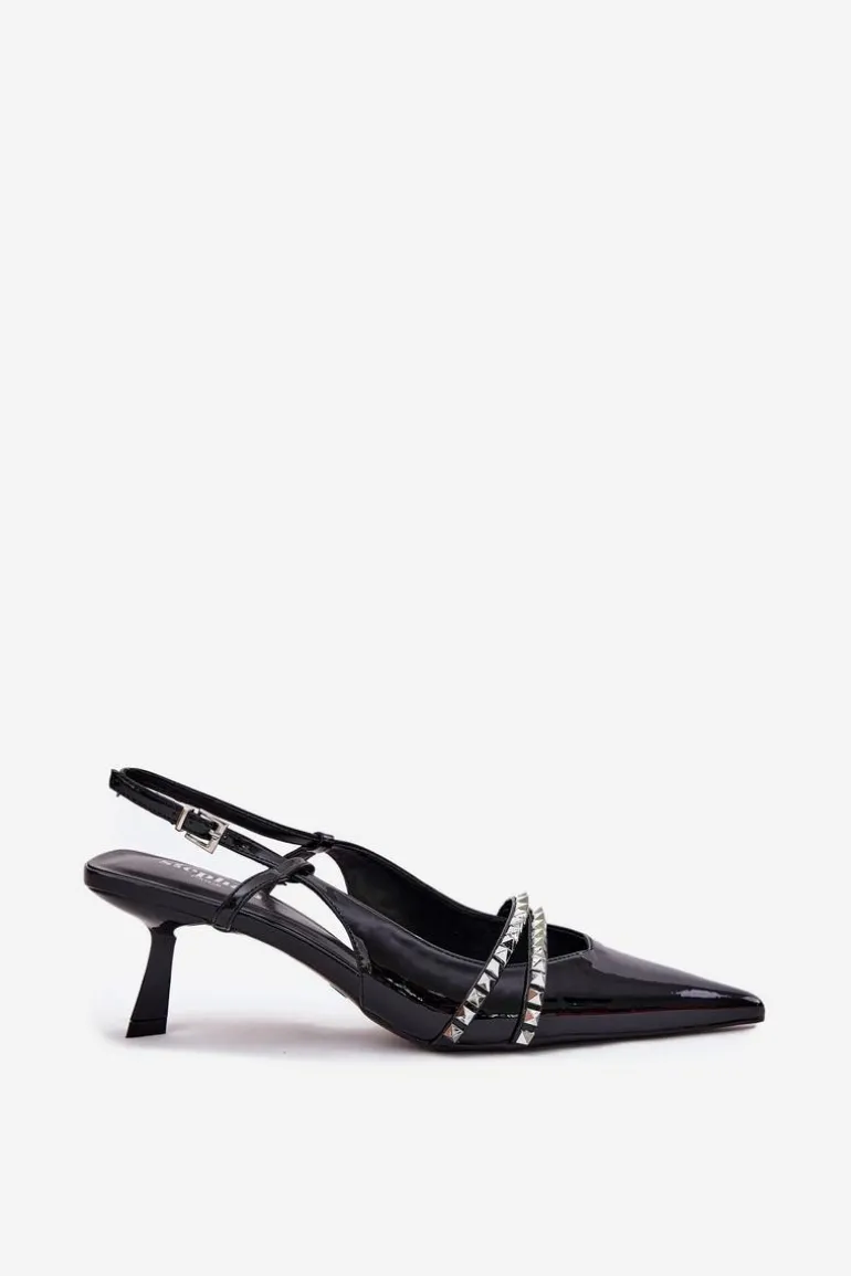 Lakierowane Czółenka Na Szpilce Z Ozdobnymi Paskami Czarne Jelmia